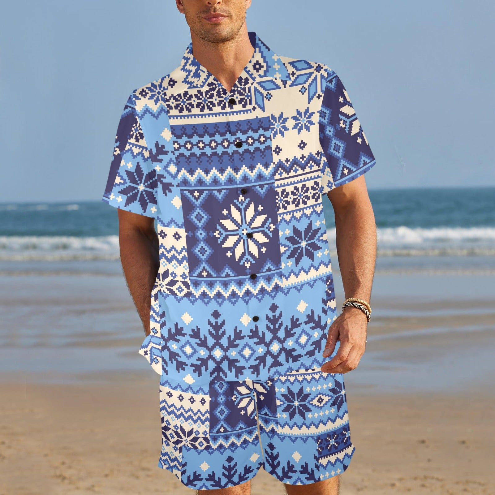 Nordic Pattern Print Design A04 Men's Beach Shirt and Shorts Set