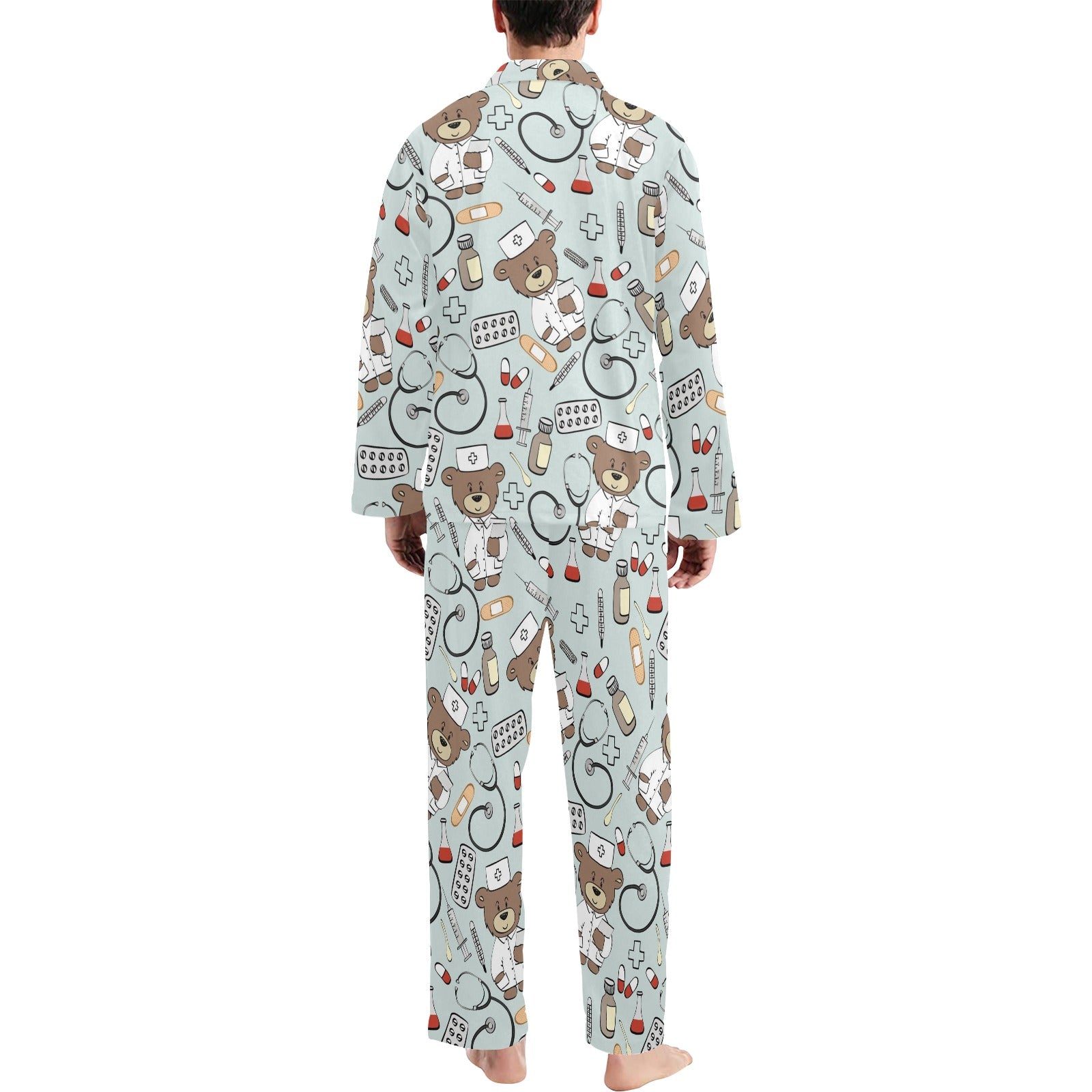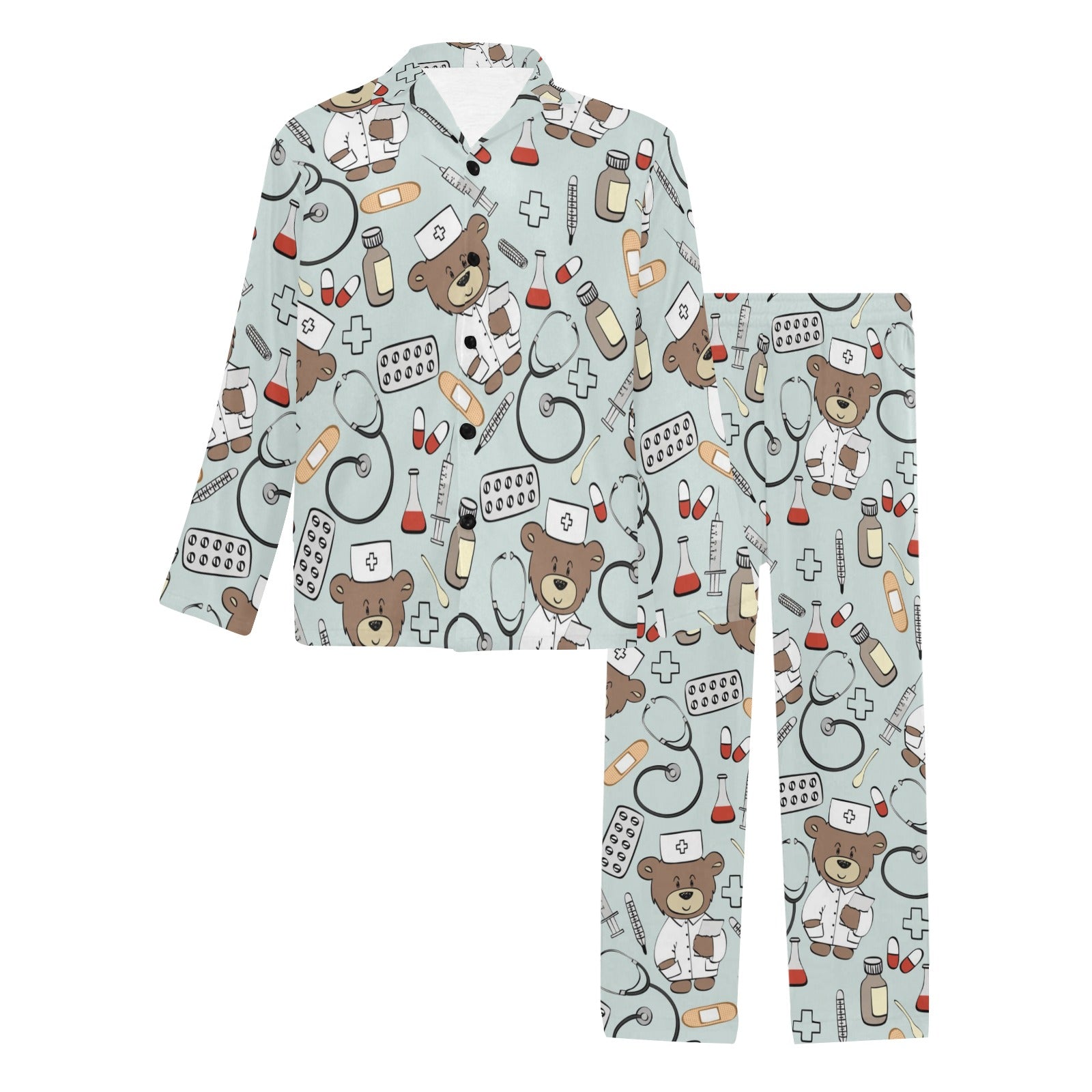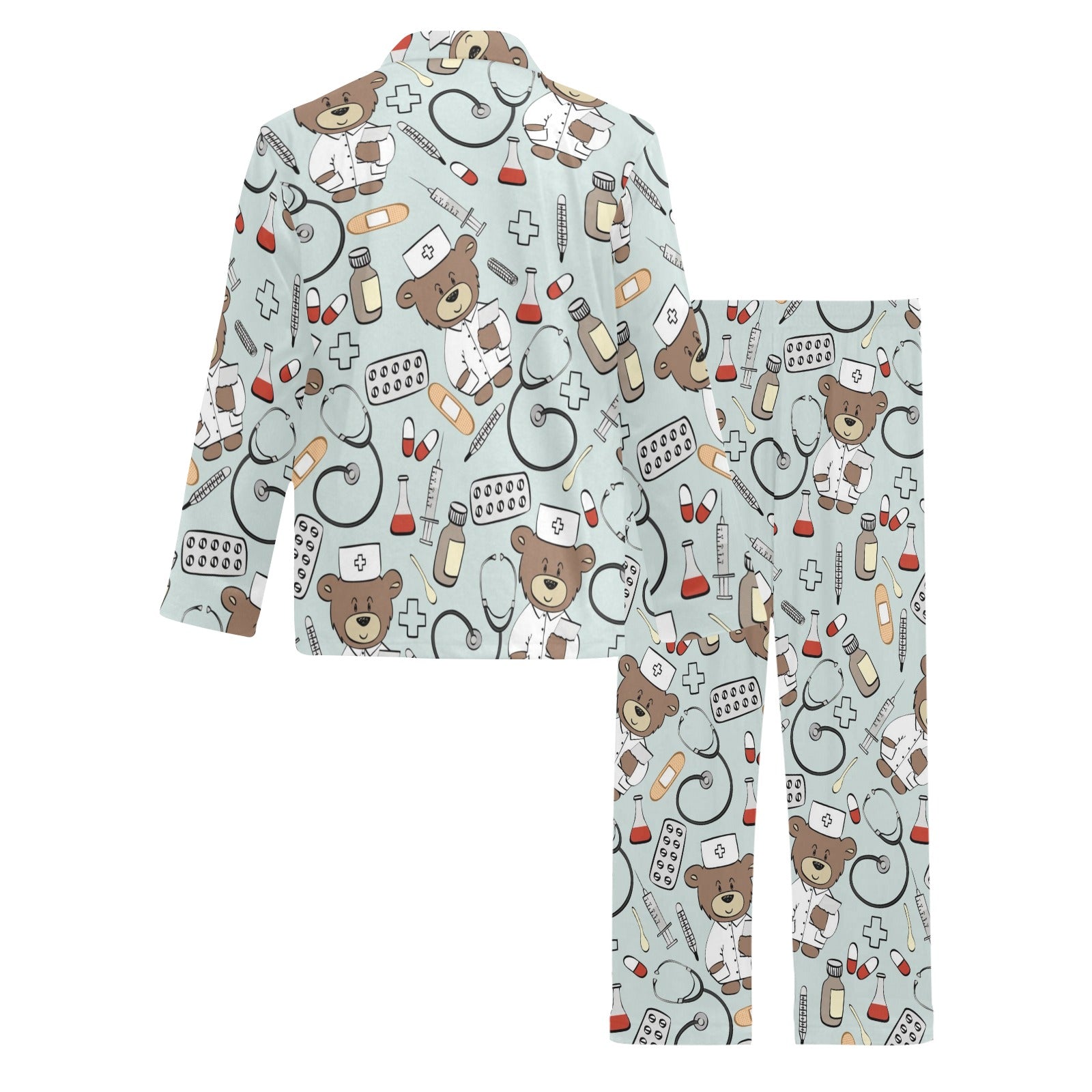 Nurse Bear Pattern Print Design A01 Men's Long Pajama Set custom-made-to-order and handcrafted to the highest quality standards.