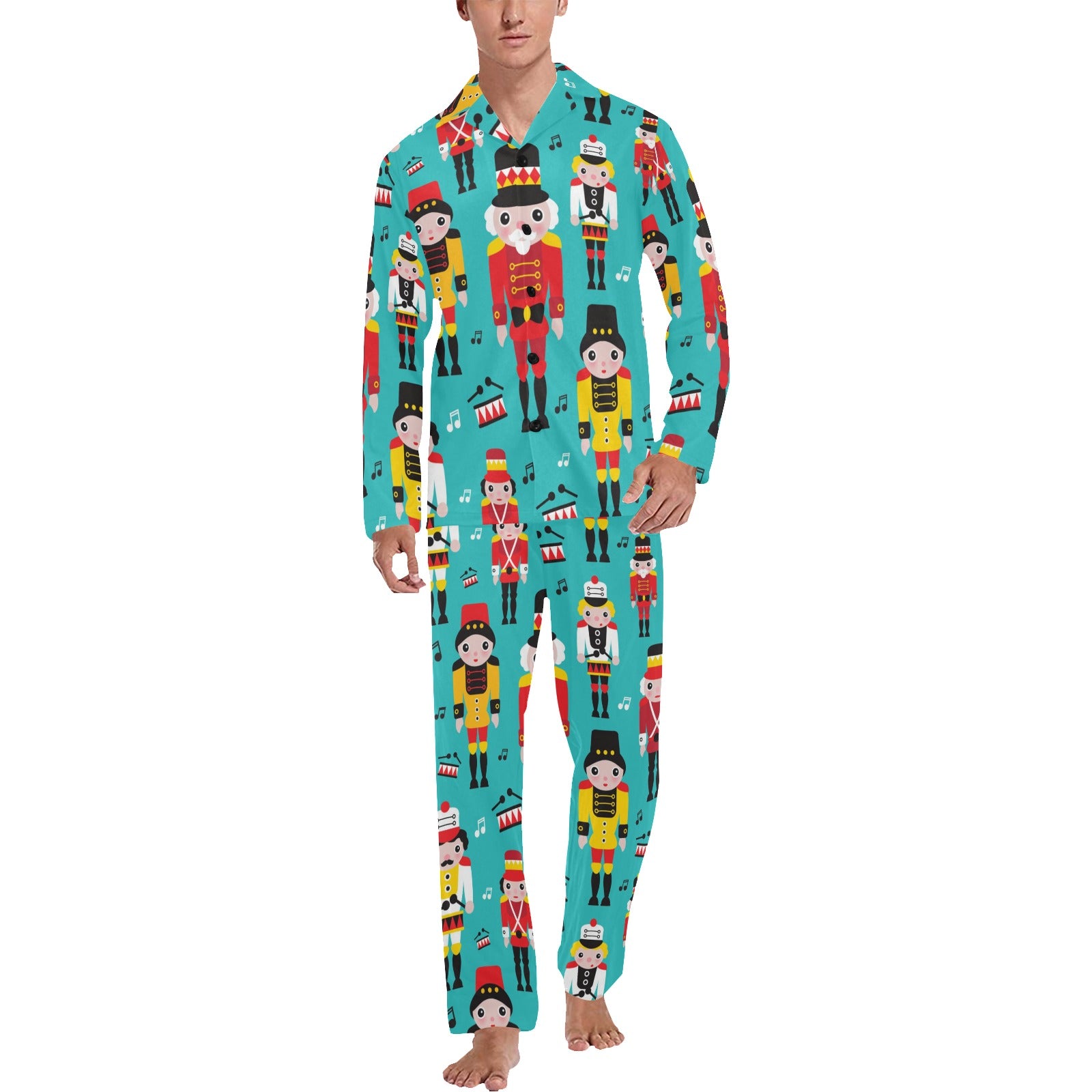 Nutcracker Pattern Print Design A03 Men's Long Pajama Set custom-made-to-order and handcrafted to the highest quality standards.