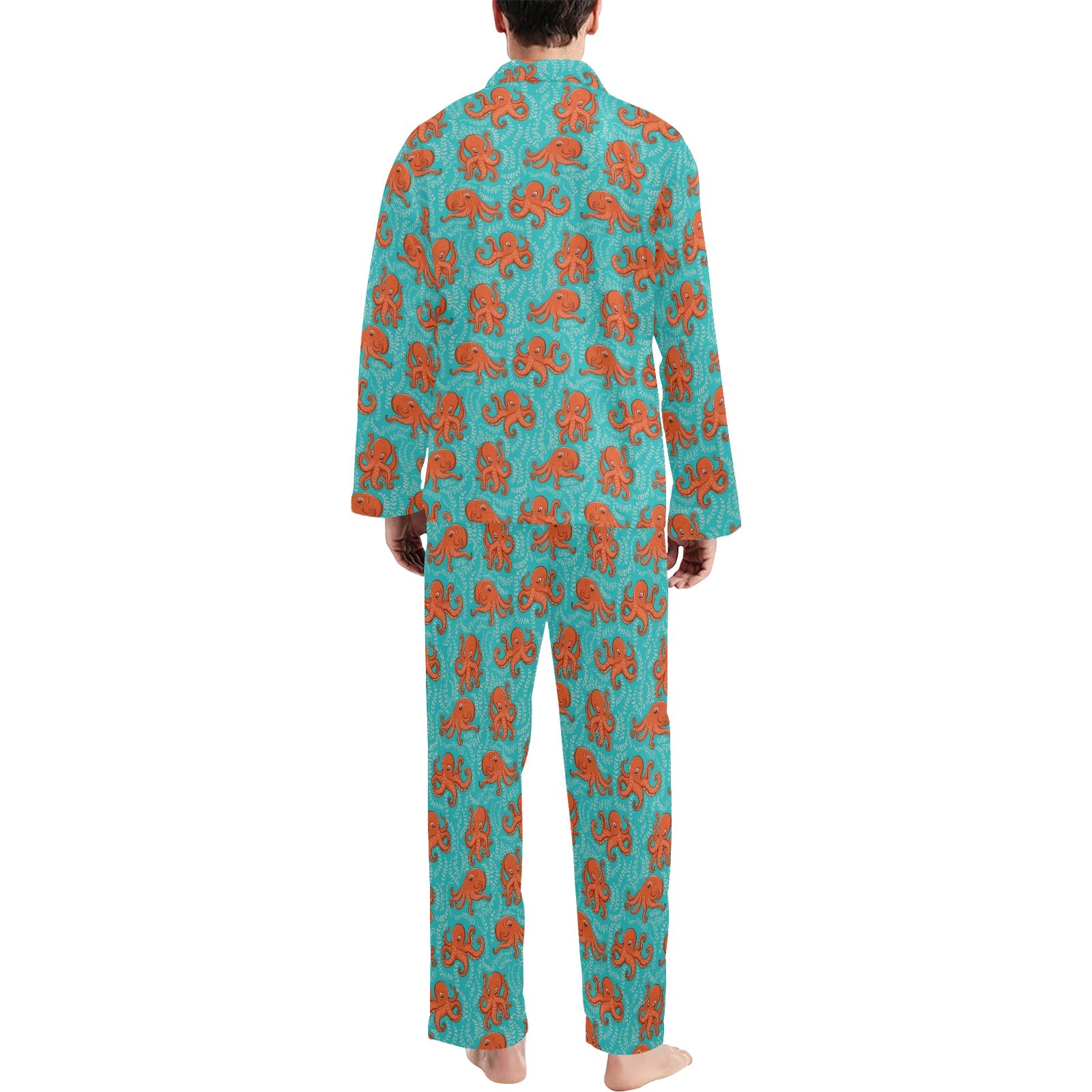 Octopus Cartoon Design Print Themed Men's Long Pajama Set custom-made-to-order and handcrafted to the highest quality standards.