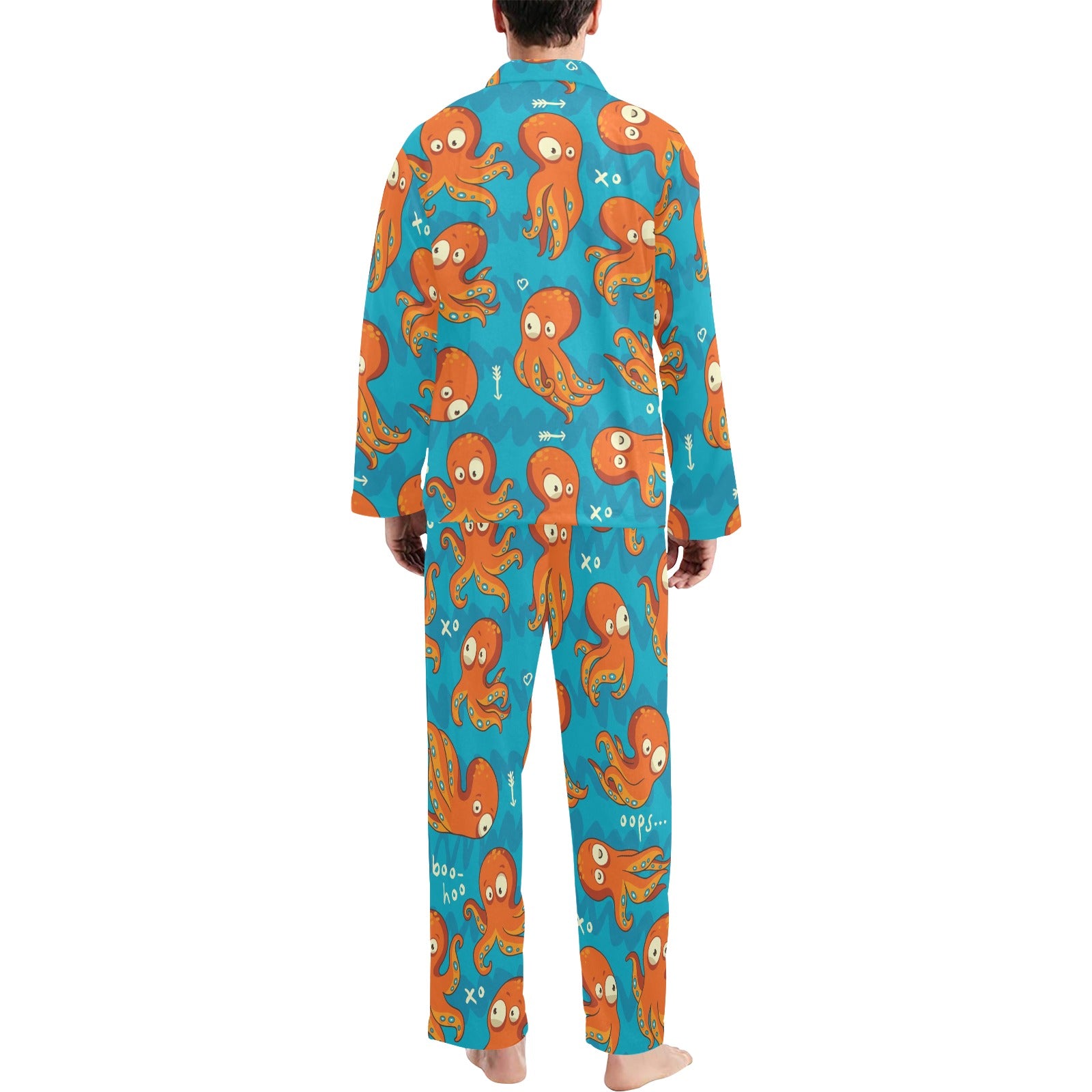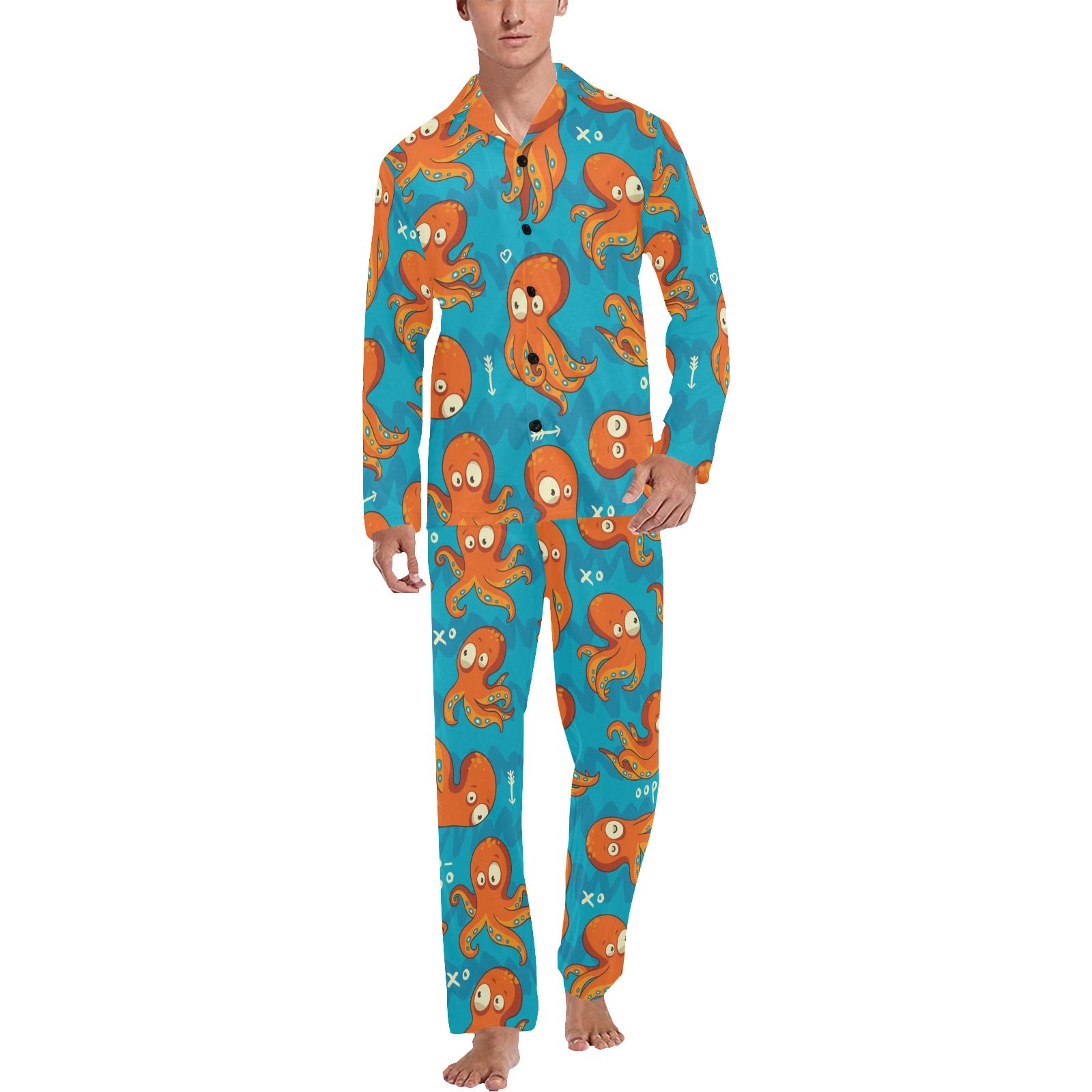 Octopus Pattern Print Design A02 Men's Long Pajama Set custom-made-to-order and handcrafted to the highest quality standards.