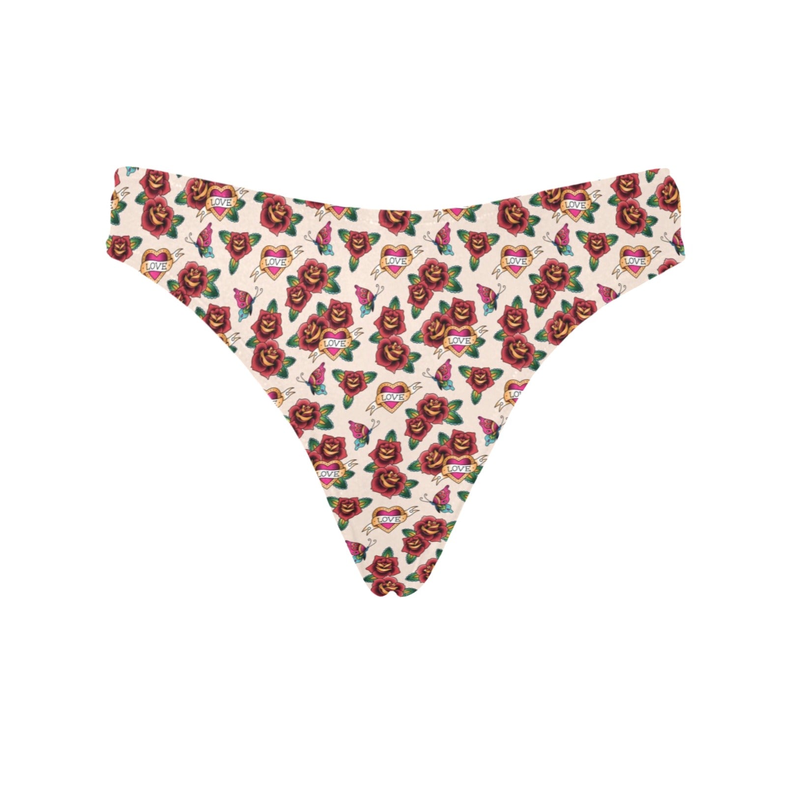 Old School Tattoo Rose Pattern Women's Thongs