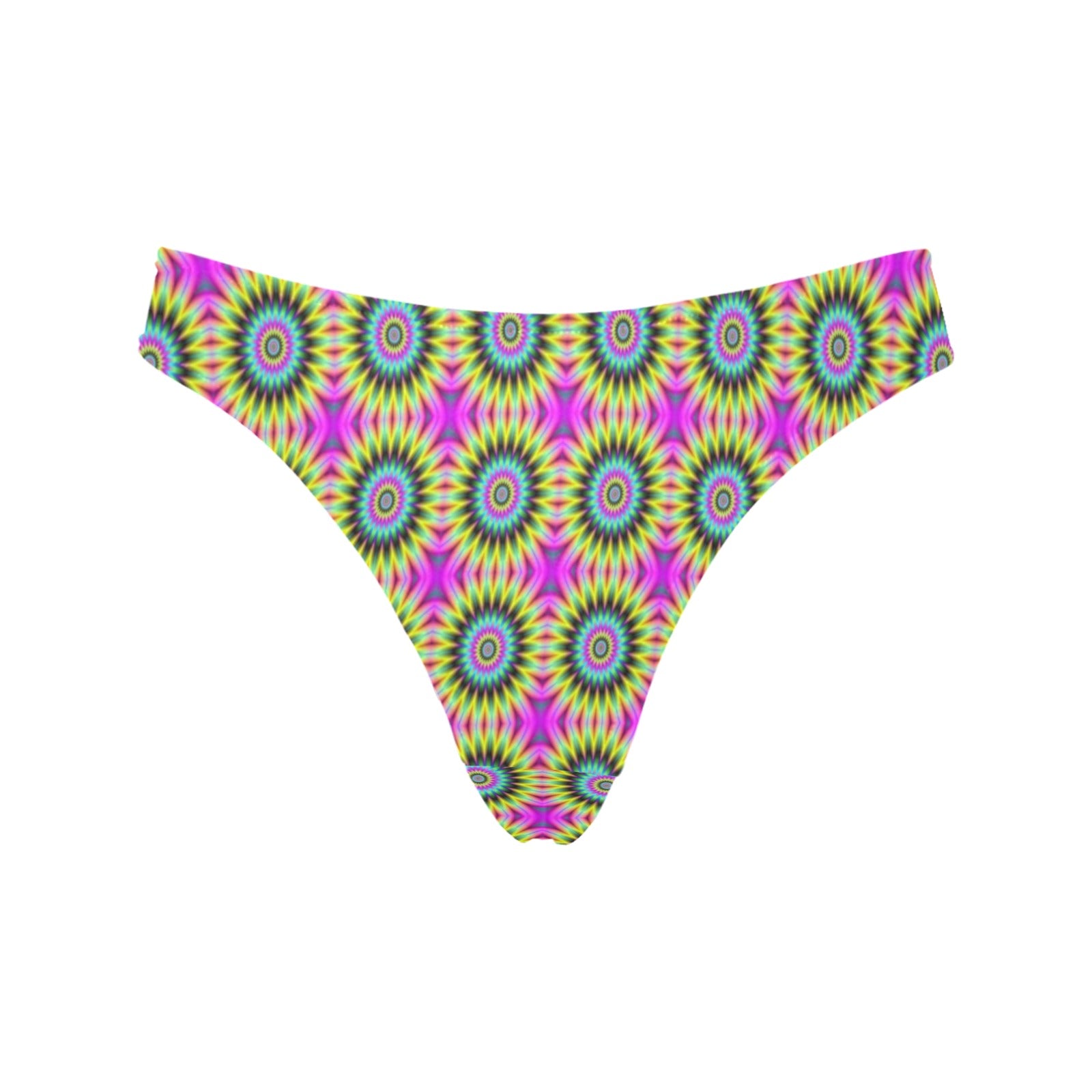 Optical illusion Flower Rainbow Style Women's Thongsis custom-made-to-order and handcrafted to the highest quality standards.