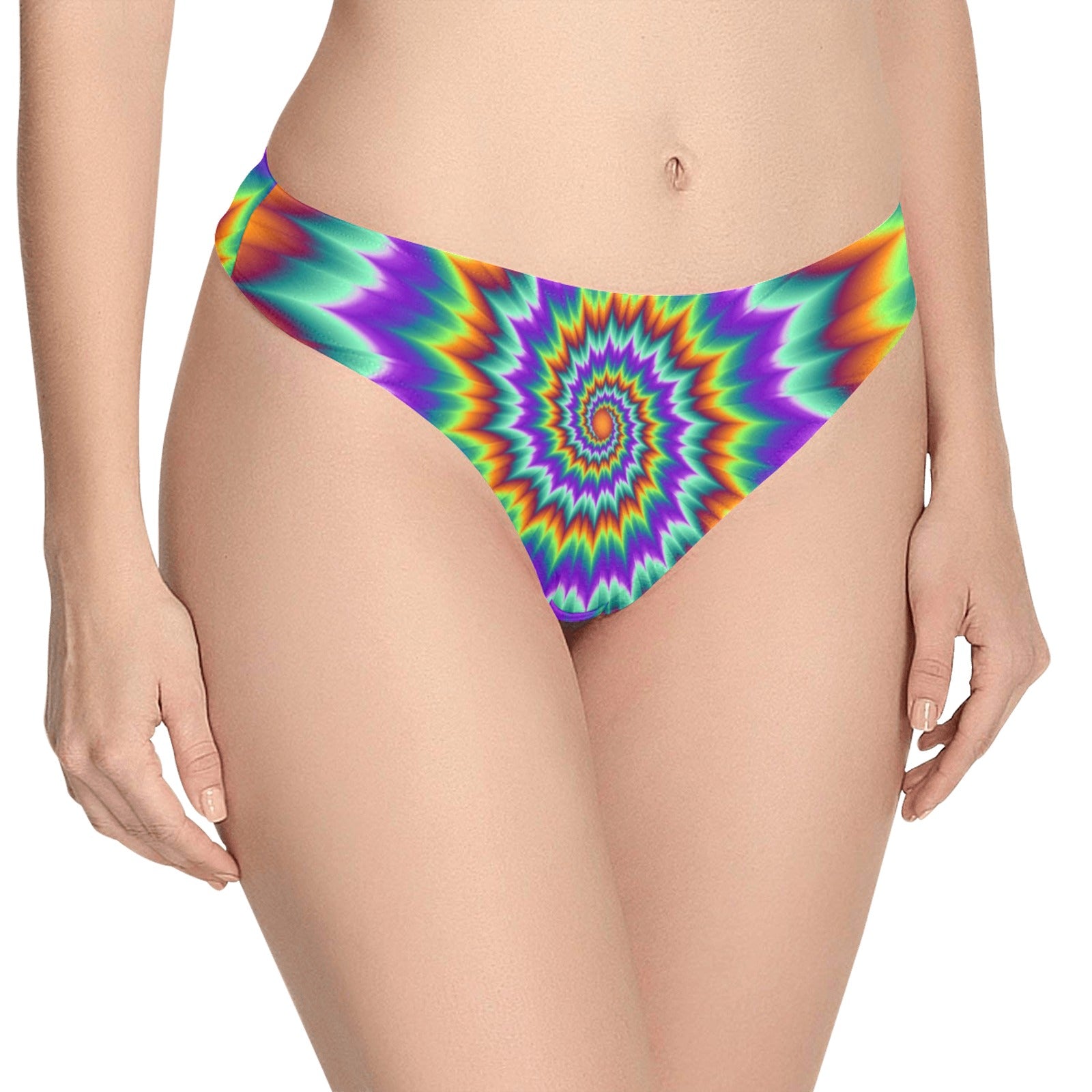 Optical illusion Pulsing fiery spirals Women's Thongsis custom-made-to-order and handcrafted to the highest quality standards.
