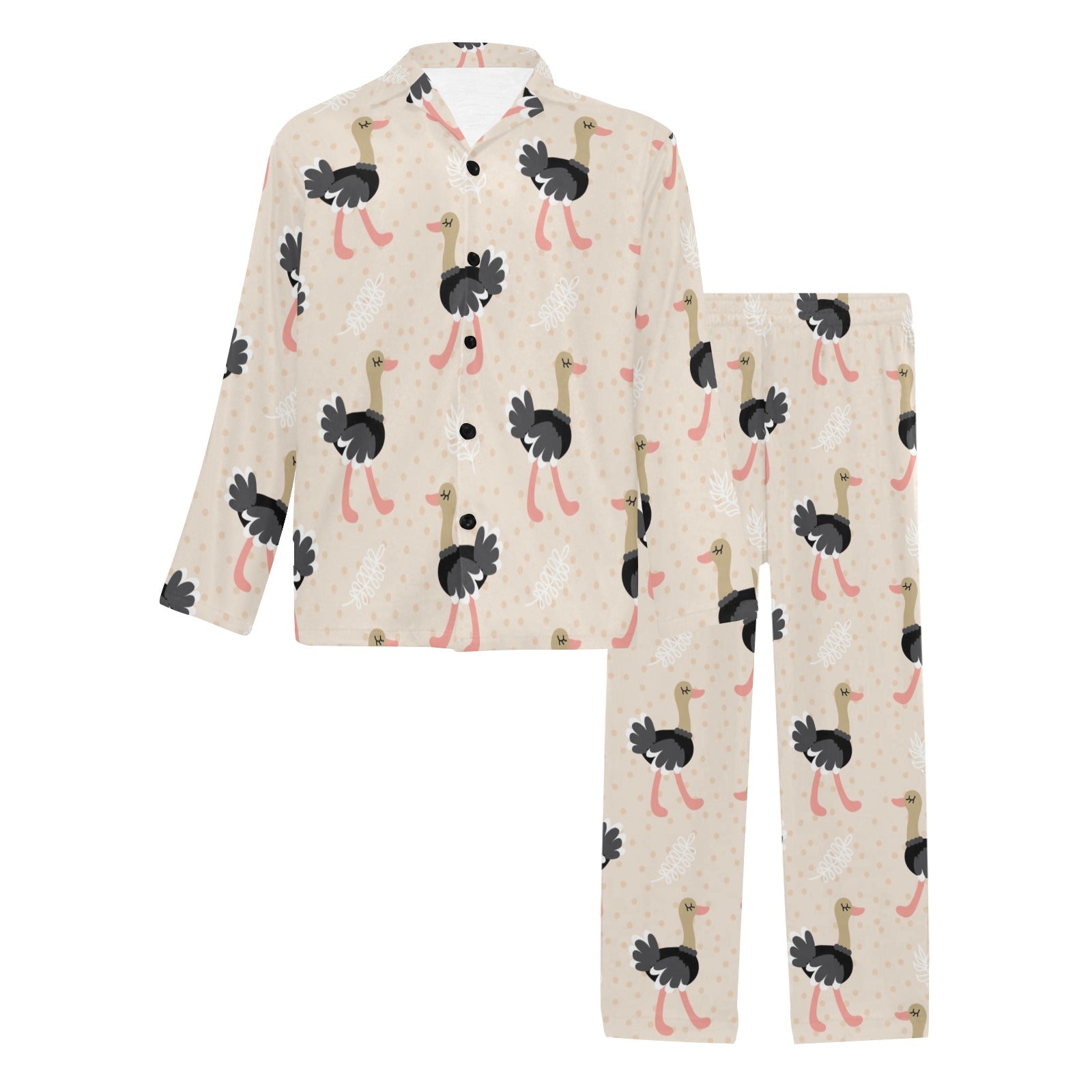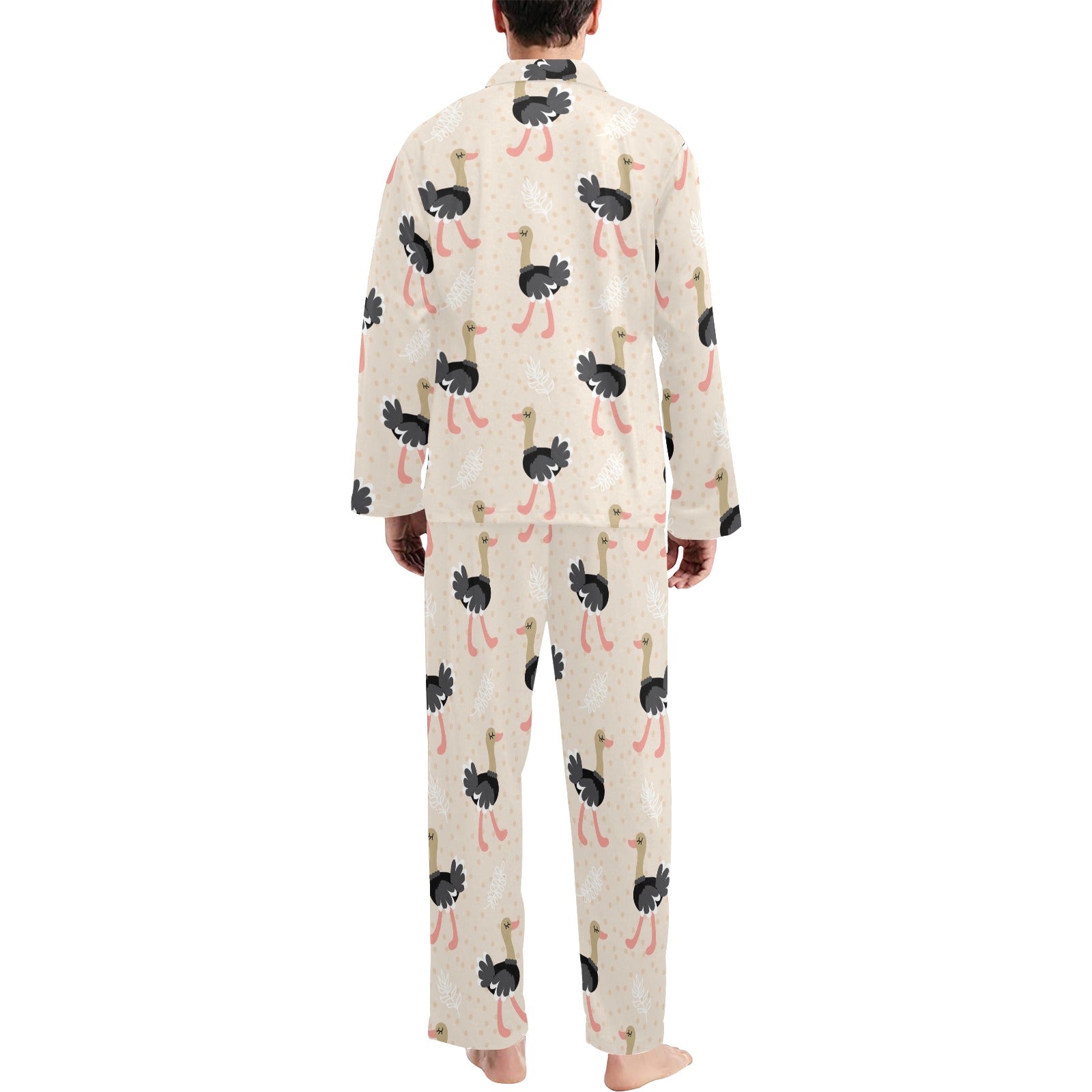Ostrich Pattern Print Design 02 Men's Long Pajama Set