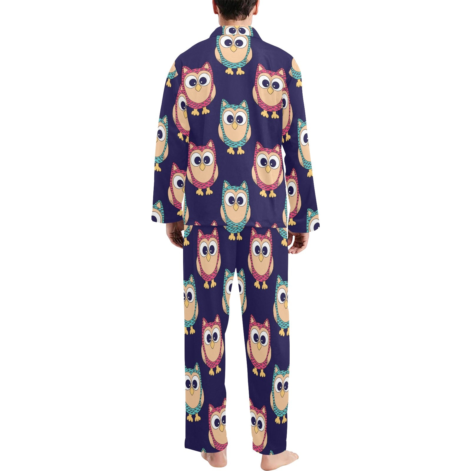 Owl Pattern Print Design A06 Men's Long Pajama Set custom-made-to-order and handcrafted to the highest quality standards.