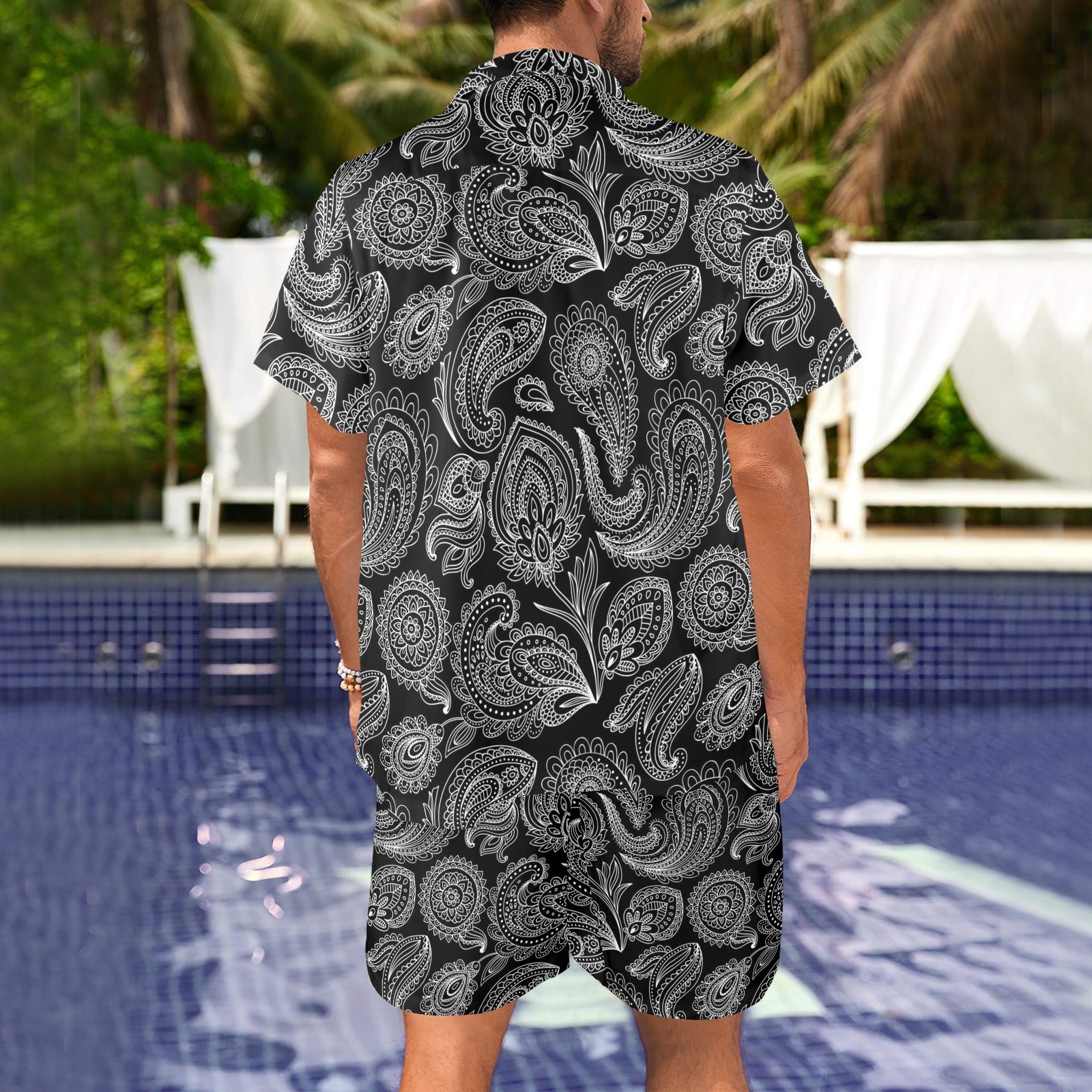 Paisley Pattern Print Design A04 Men's Beach Shirt and Shorts Set. It is hand-cut and sewn just for your order! This process starts as soon as your order is placed and may have a processing time of 5-9 business days before it ships.