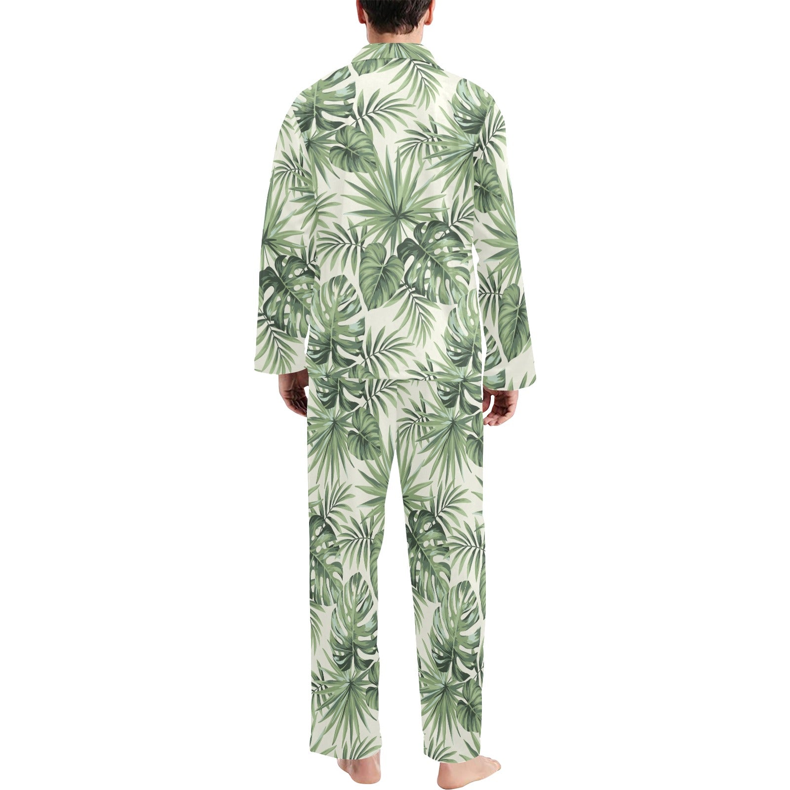 Palm Leaf Pattern Print Design A02 Men's Long Pajama Set custom-made-to-order and handcrafted to the highest quality standards.