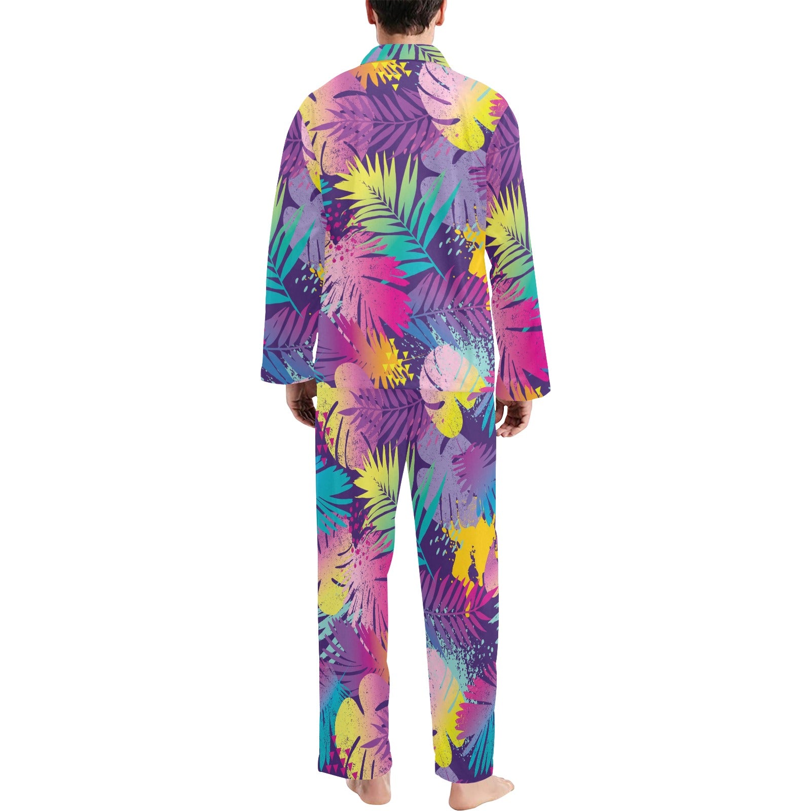 Palm Leaf Pattern Print Design A04 Men's Long Pajama Set