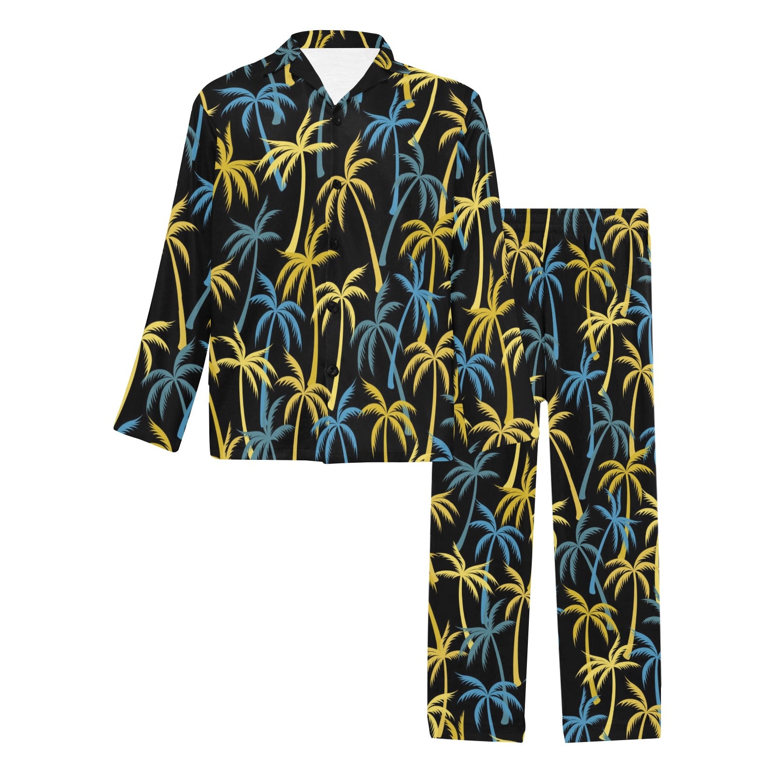 Palm Tree Pattern Men's Long Pajama Set Made to Order Item. It is hand-cut and sewn just for your order! This process starts as soon as your order is placed and may have a processing time of 5-9 business days before it ships.