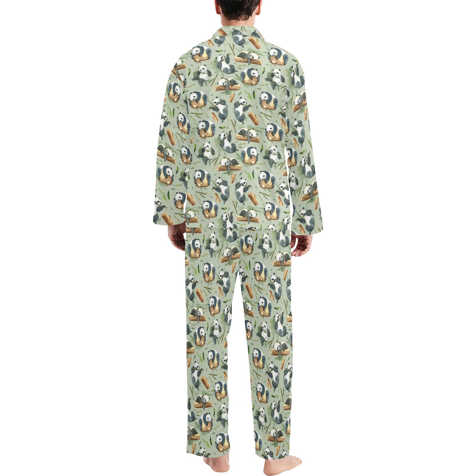 Panda Bear Design Bamboo Print Men's Long Pajama Set