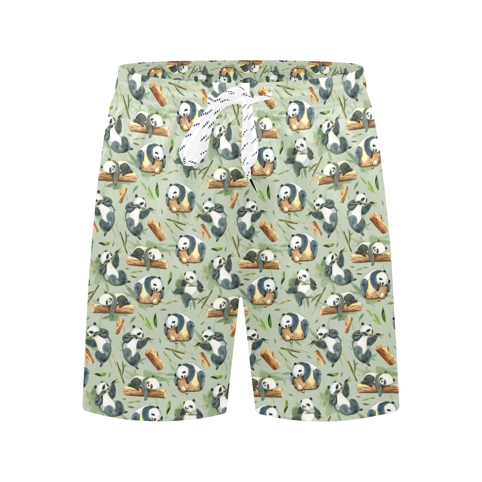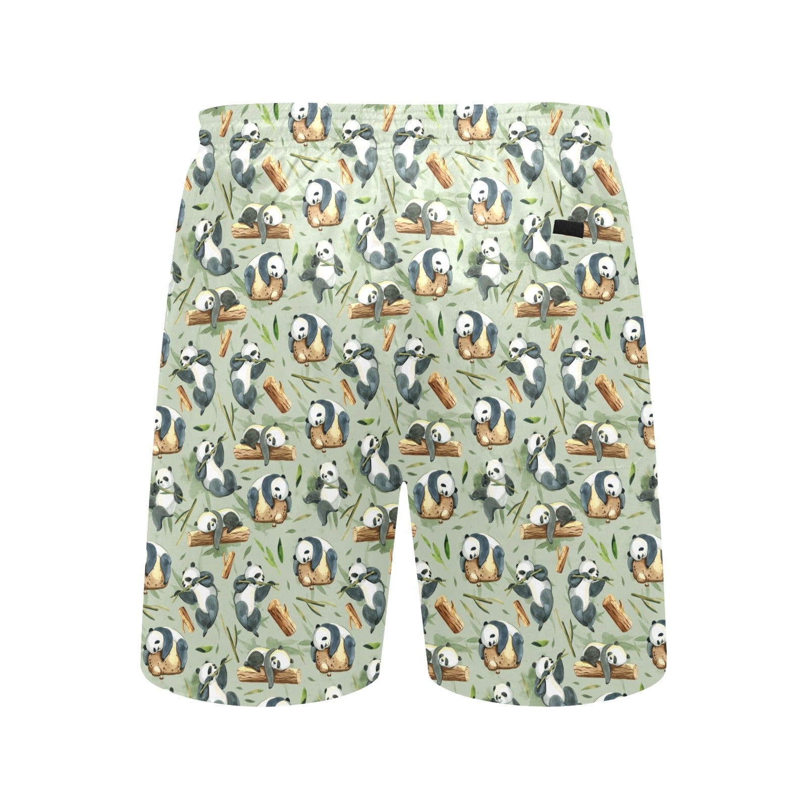 Panda Bear Design Bamboo Print Men's Swim Trunks Beach Shorts
