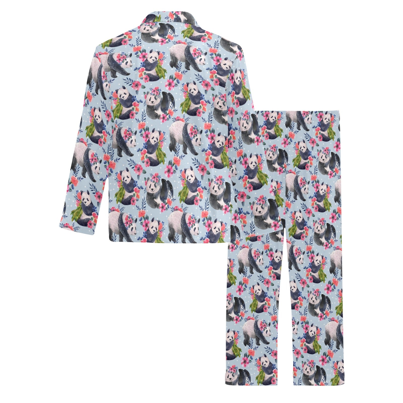 Panda Bear Flower Design Themed Print Men's Long Pajama Set custom-made-to-order and handcrafted to the highest quality standards.