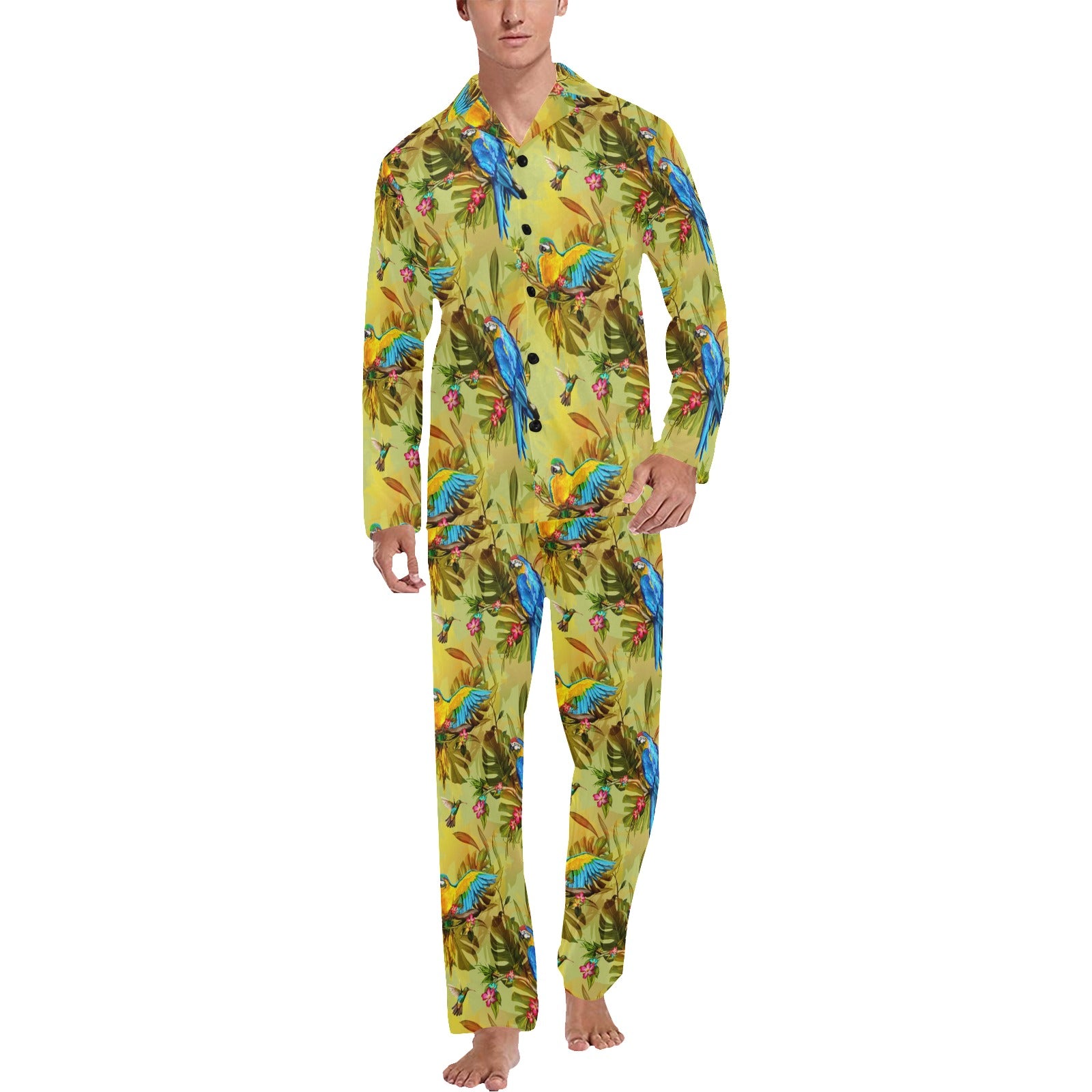 Parrot Pattern Print Design A02 Men's Long Pajama Set custom-made-to-order and handcrafted to the highest quality standards.