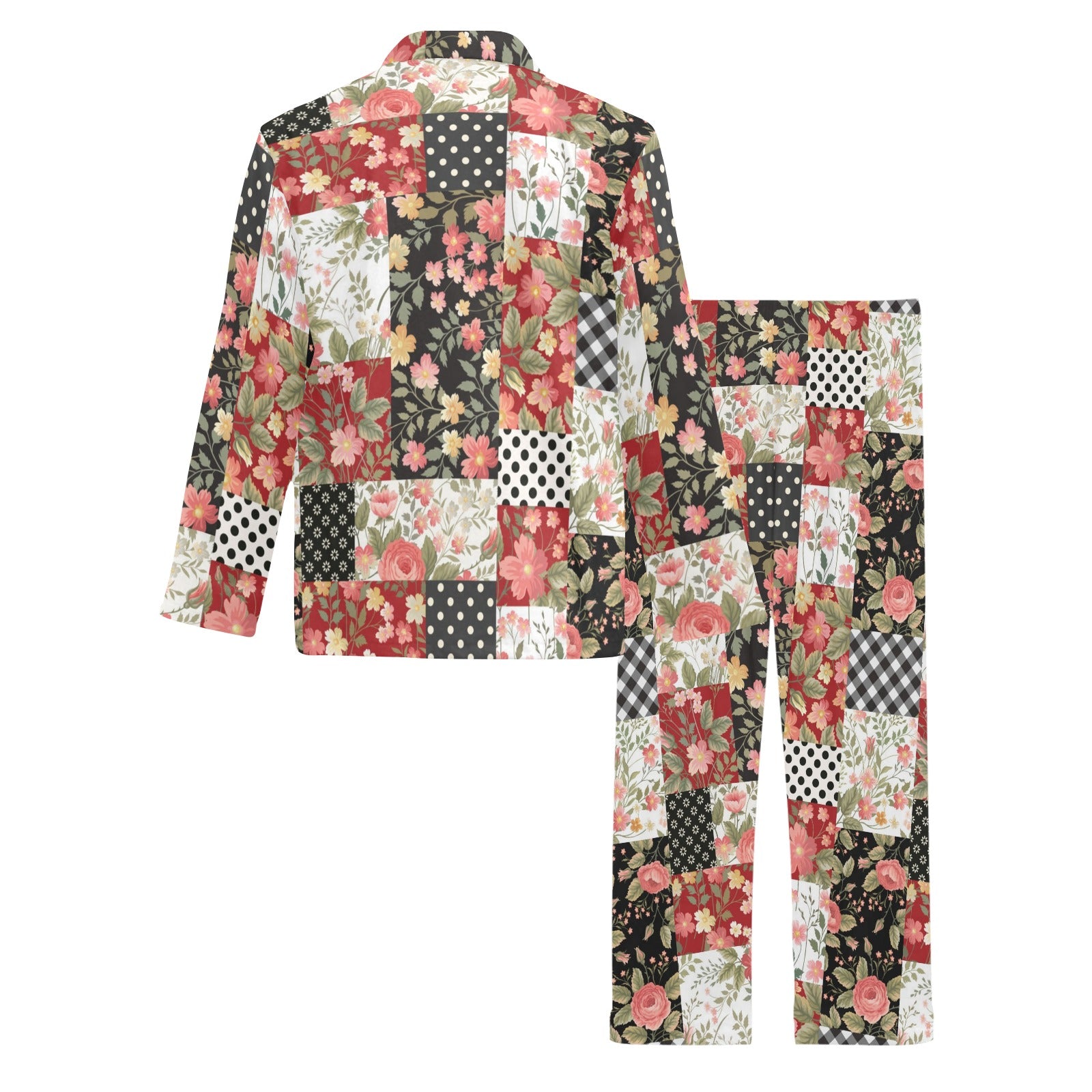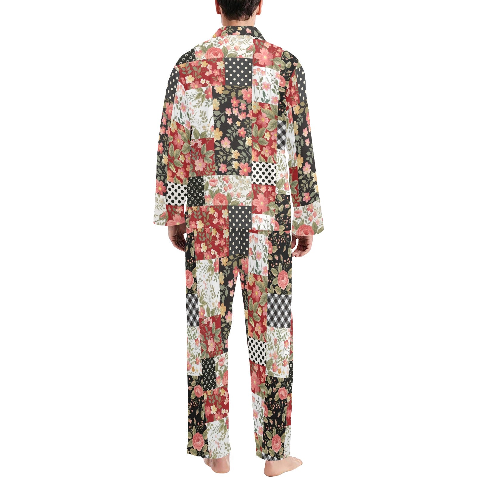 Patchwork Flower Pattern Print Design 03 Men's Long Pajama Set custom-made-to-order and handcrafted to the highest quality standards.