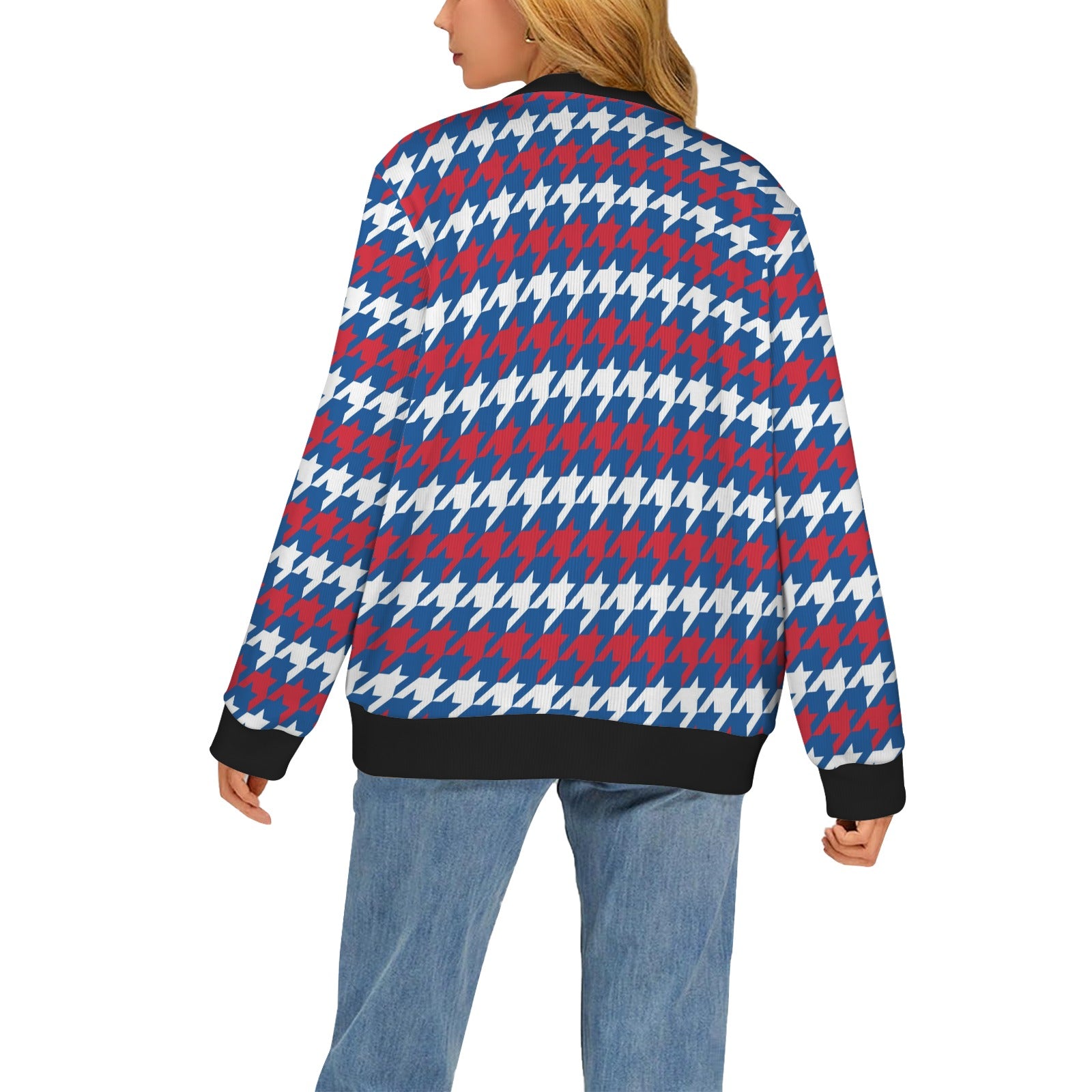 Patriotic Houndstooth Pattern Print Design A02 Women's Cardigan