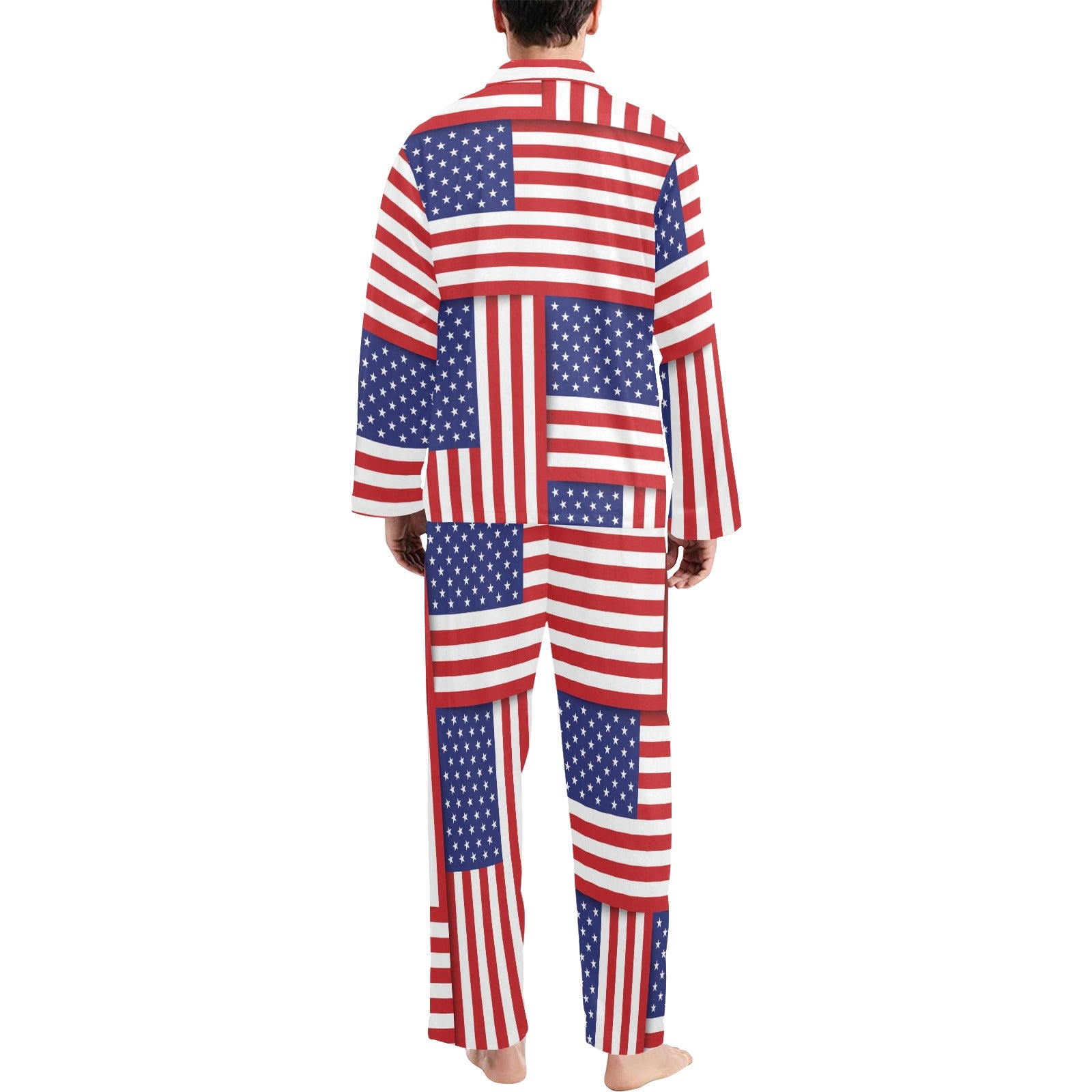 Patriotic US Flag Pattern Print Design A01 Men's Long Pajama Set custom-made-to-order and handcrafted to the highest quality standards.