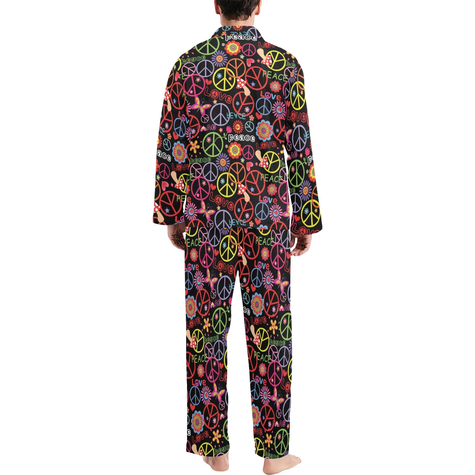 Peace Sign Colorful Design Print Men's Long Pajama Set