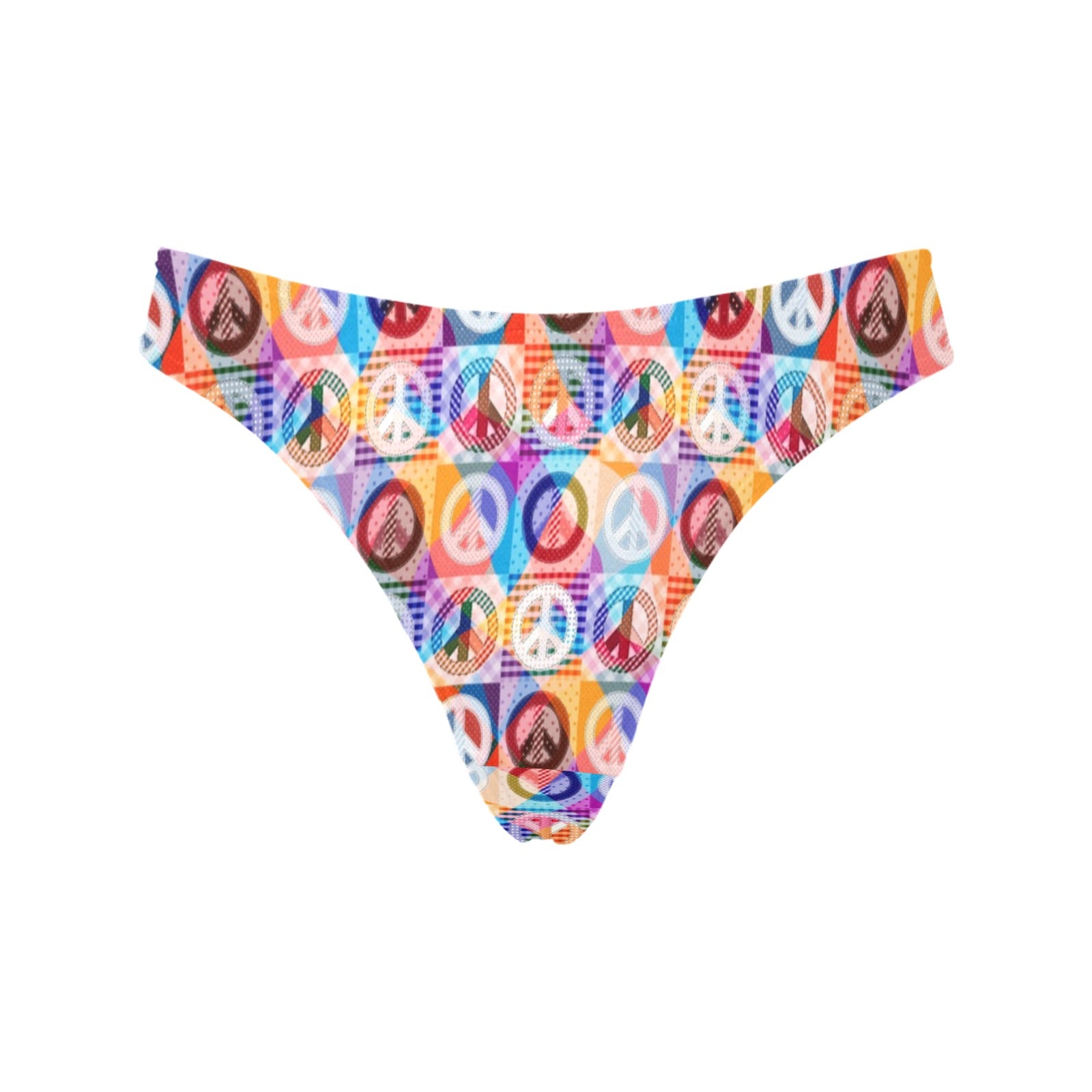 Peace Sign Patchwork Design Print Women's Thongsis custom-made-to-order and handcrafted to the highest quality standards.