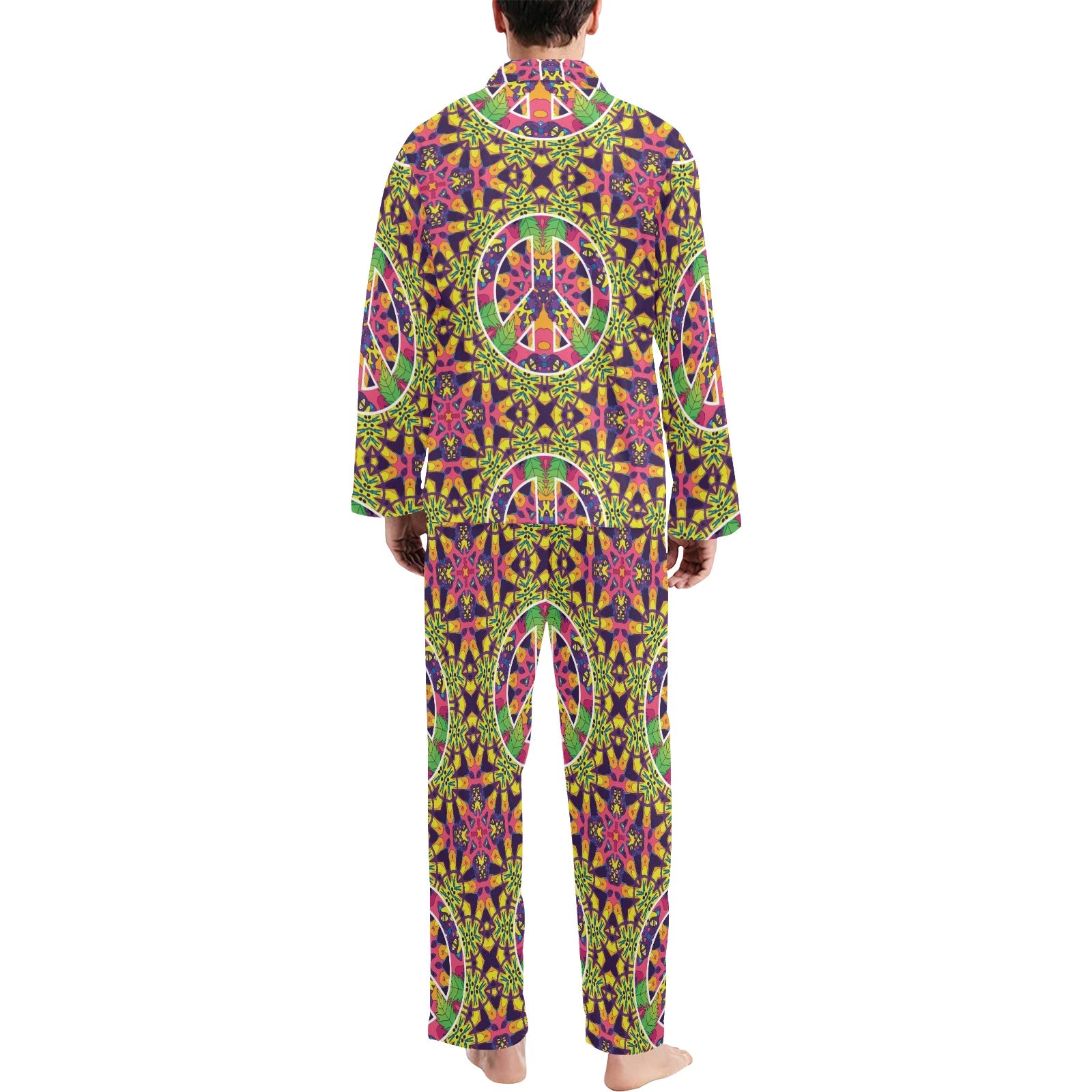 Peace Sign Pattern Print Design A04 Men's Long Pajama Set