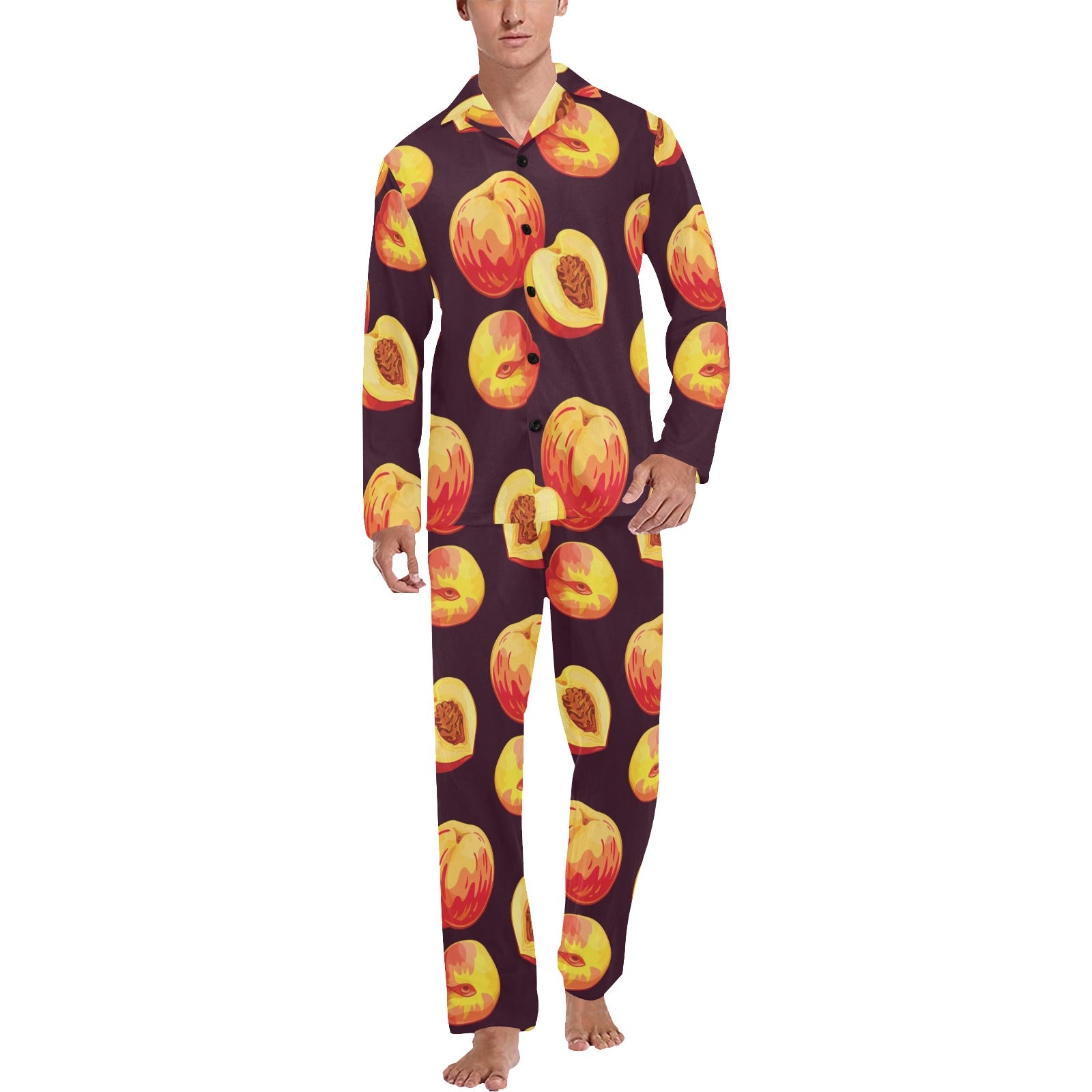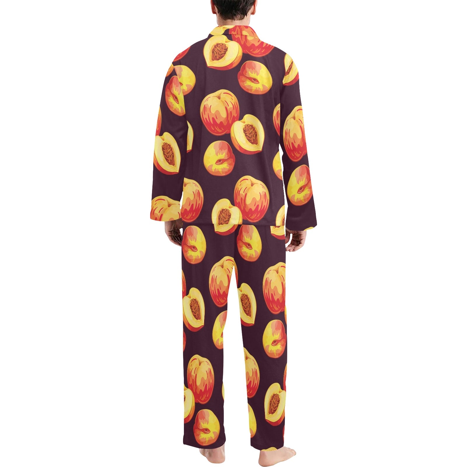 Peach Pattern Print Design A04 Men's Long Pajama Set custom-made-to-order and handcrafted to the highest quality standards.