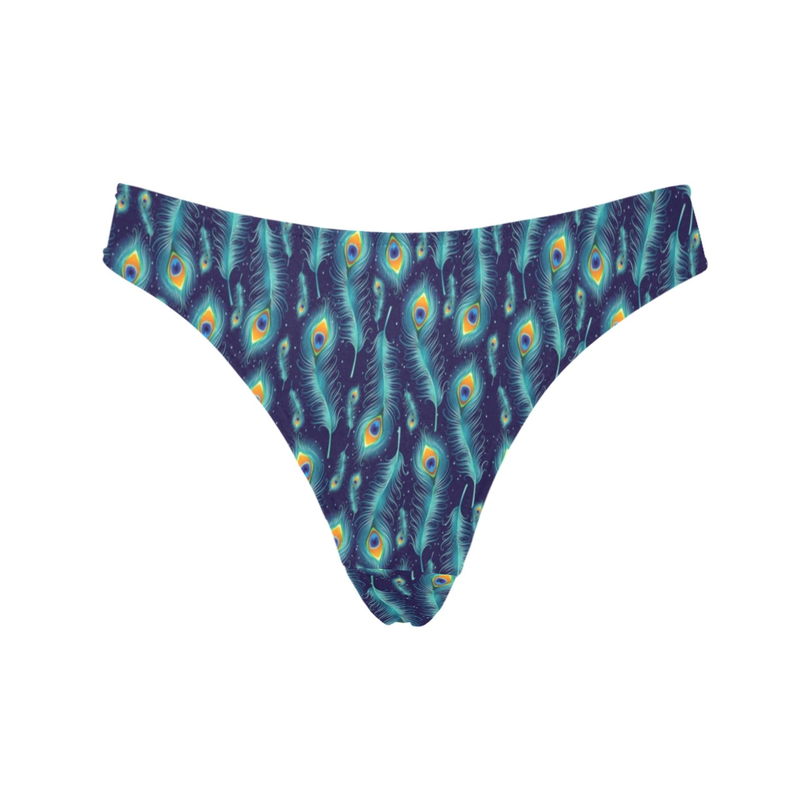 Peacock Feather Blue Design Print Women's Thongsis custom-made-to-order and handcrafted to the highest quality standards.