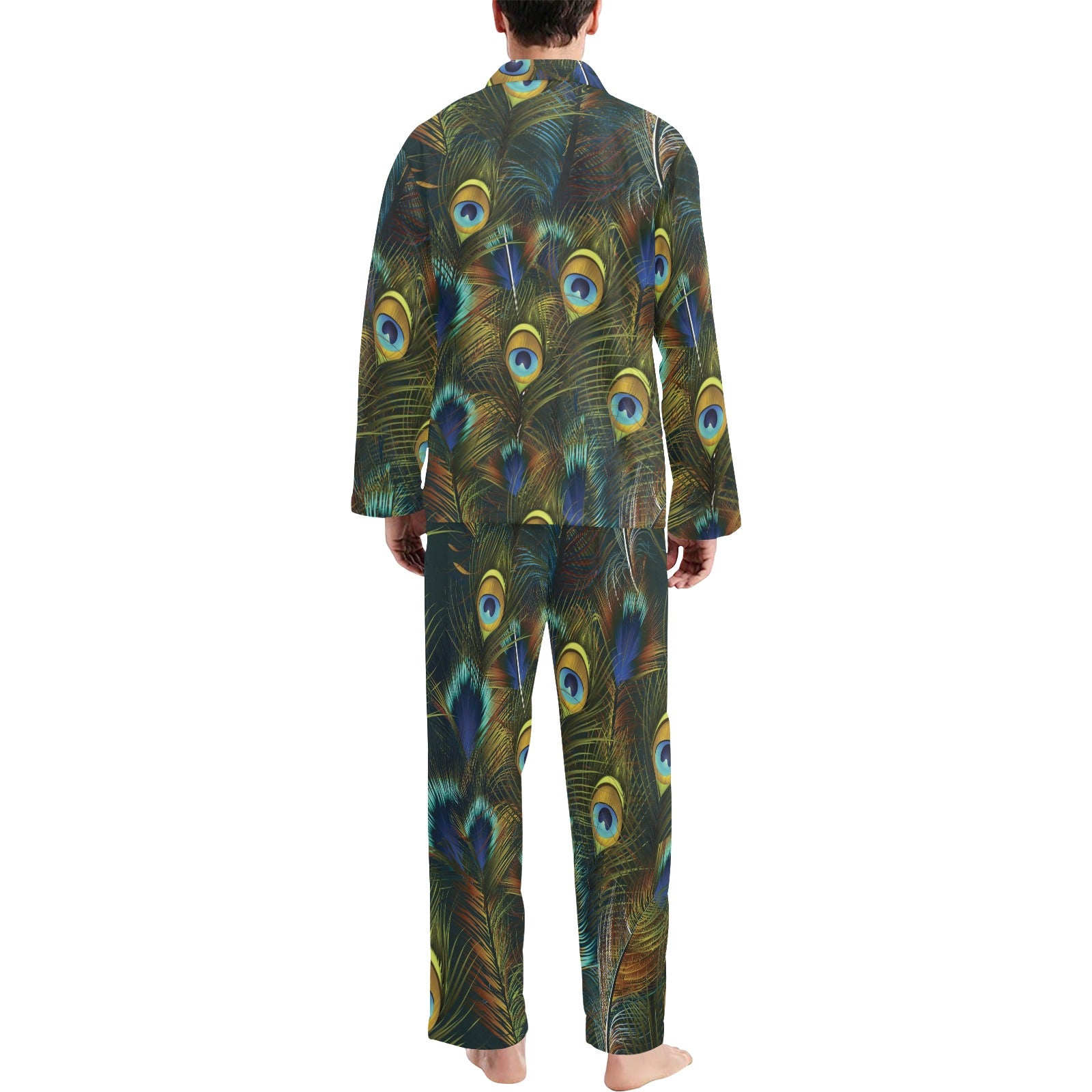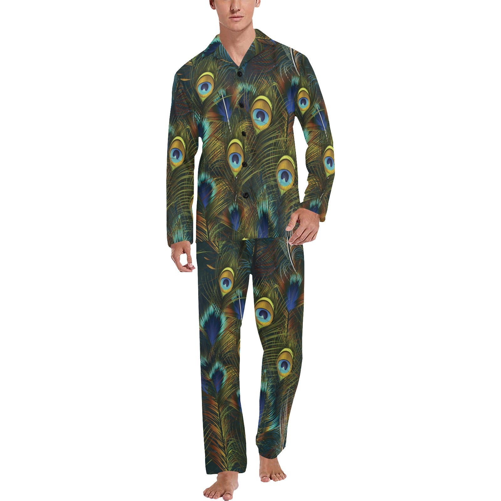 Peacock Feather Pattern Print Design A03 Men's Long Pajama Set custom-made-to-order and handcrafted to the highest quality standards.