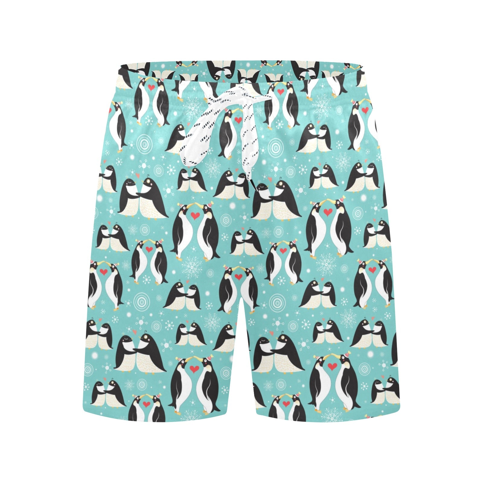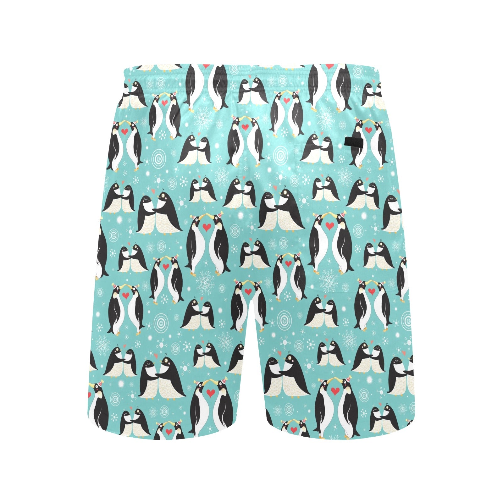 Penguin Love Print Men's Swim Trunks Beach Shorts