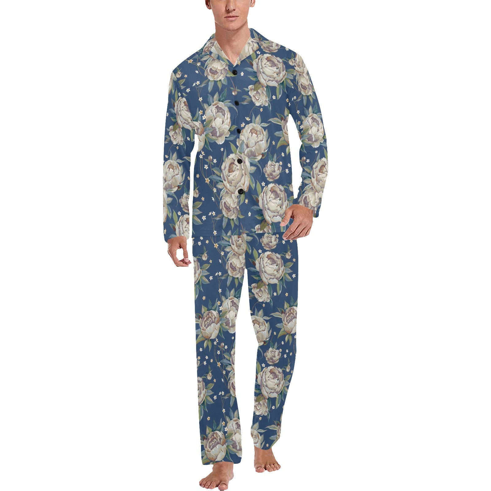 Peony Pattern Print Design A03 Men's Long Pajama Set