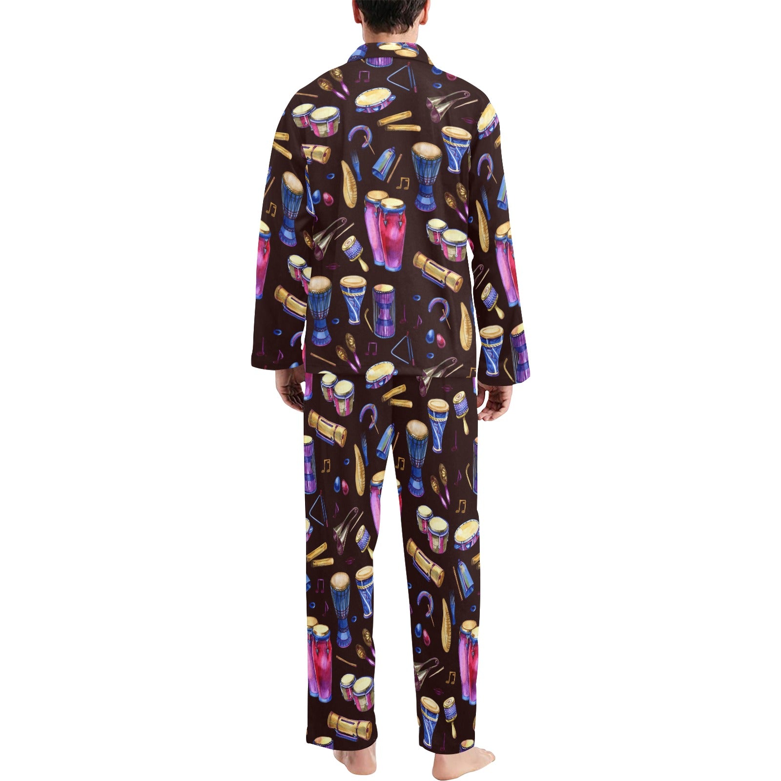 Percussion Neon Pattern Print Design 04 Men's Long Pajama Set custom-made-to-order and handcrafted to the highest quality standards.