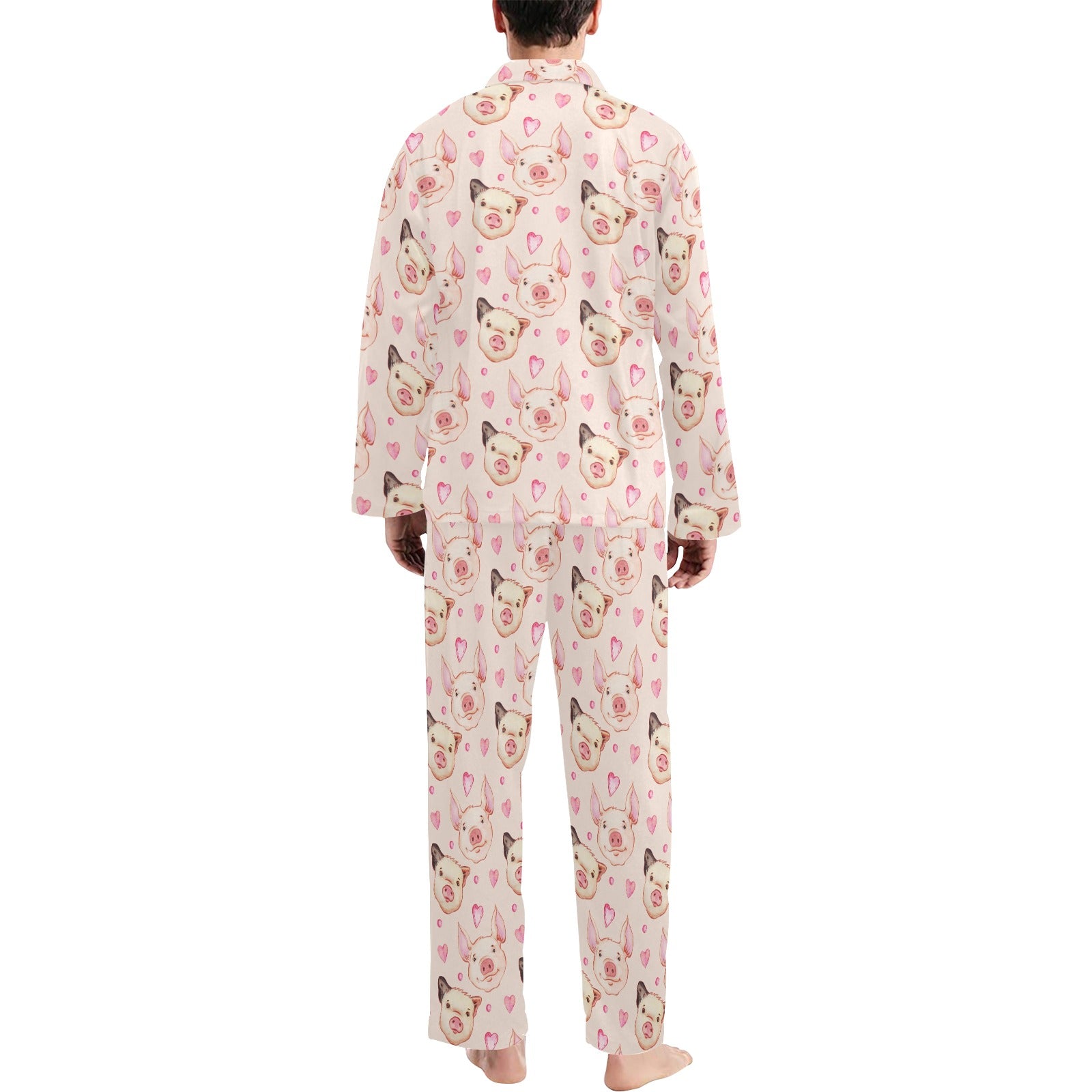 Pig Print Design LKS406 Men's Long Pajama Set custom-made-to-order and handcrafted to the highest quality standards.