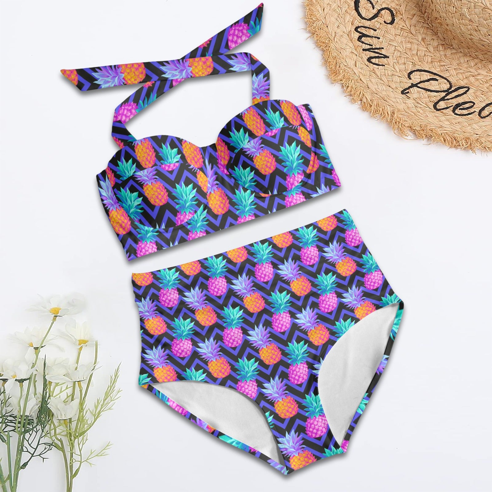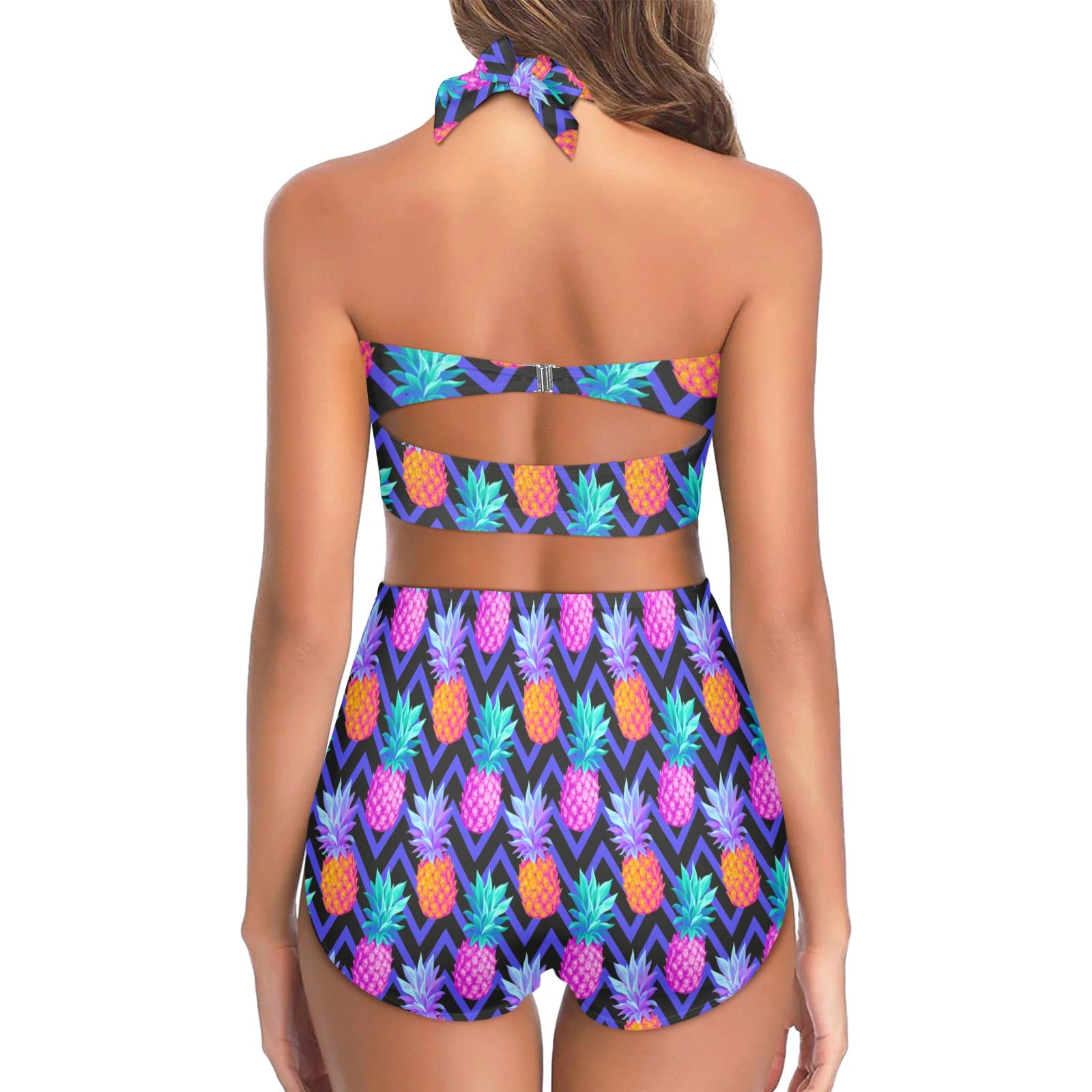 Pineapple Color Art Pattern Halter Neck Bikini Swimsuit made-to-order and handcrafted to the highest quality standards.