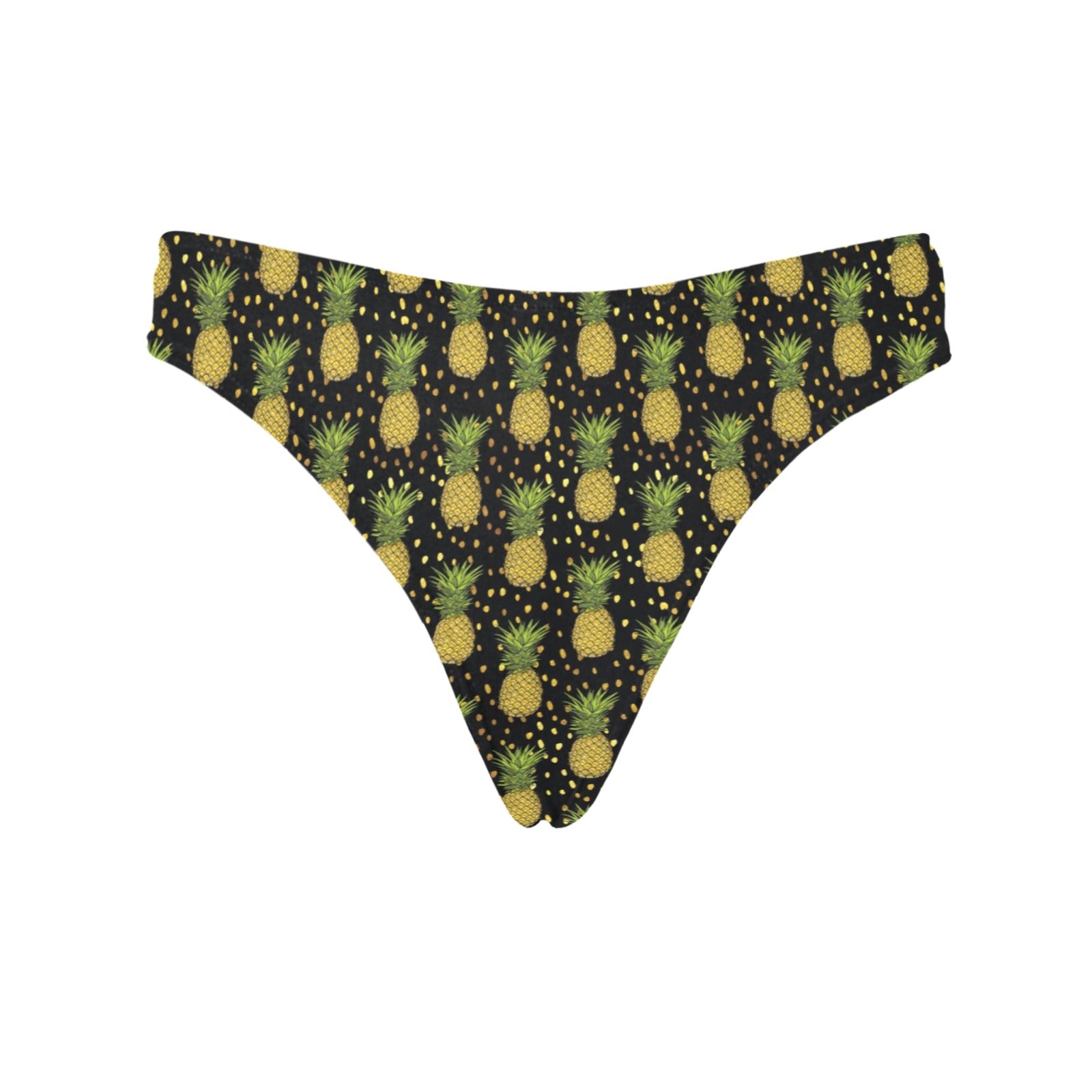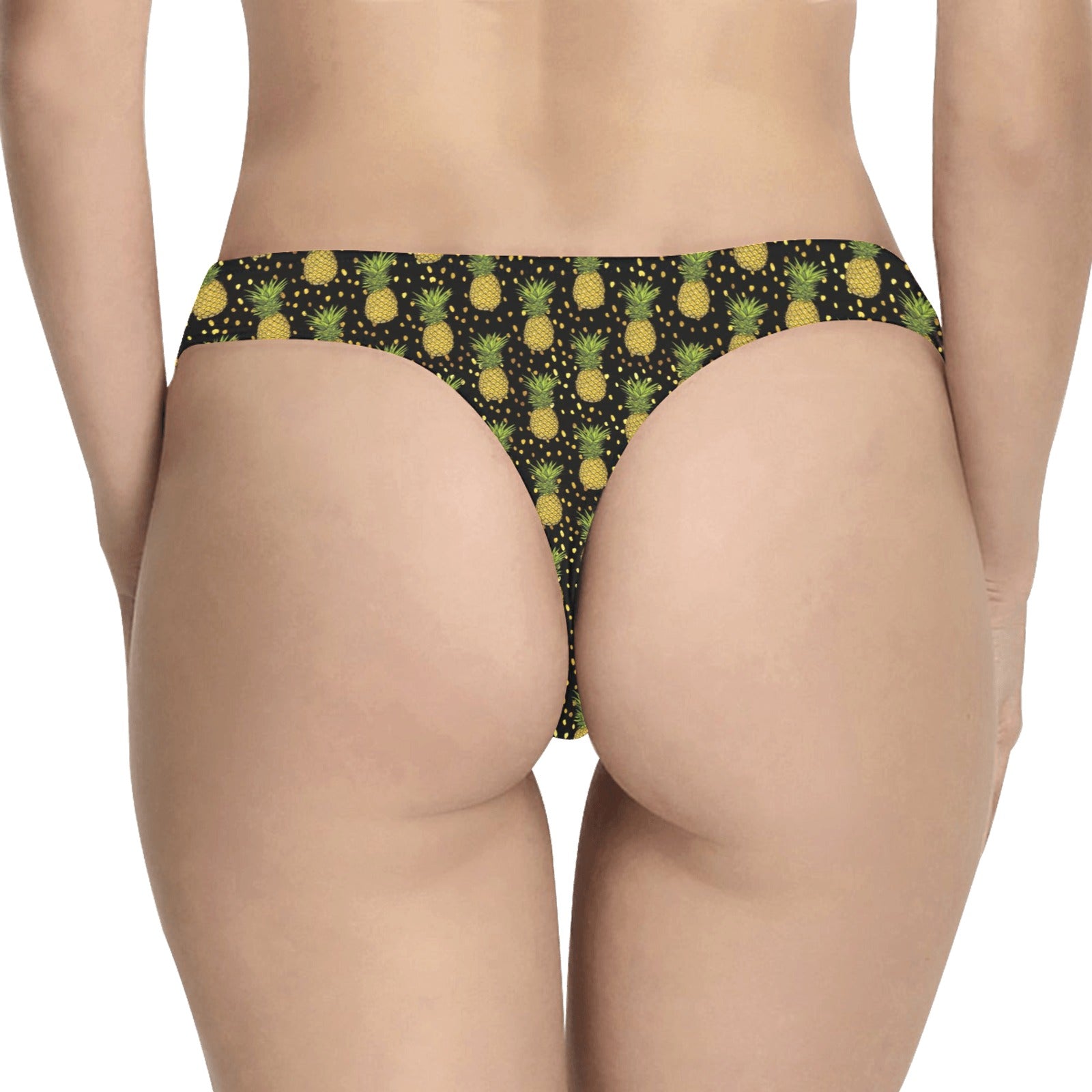 Pineapple Gold Dot Themed Print Women's Thongsis custom-made-to-order and handcrafted to the highest quality standards.