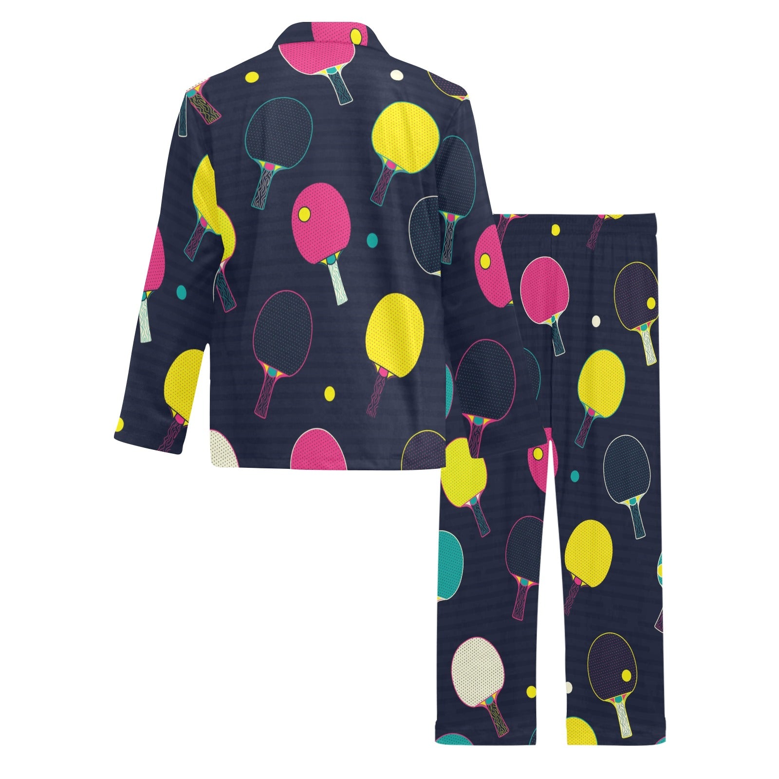 Ping Pong Pattern Print Design A04 Men's Long Pajama Set