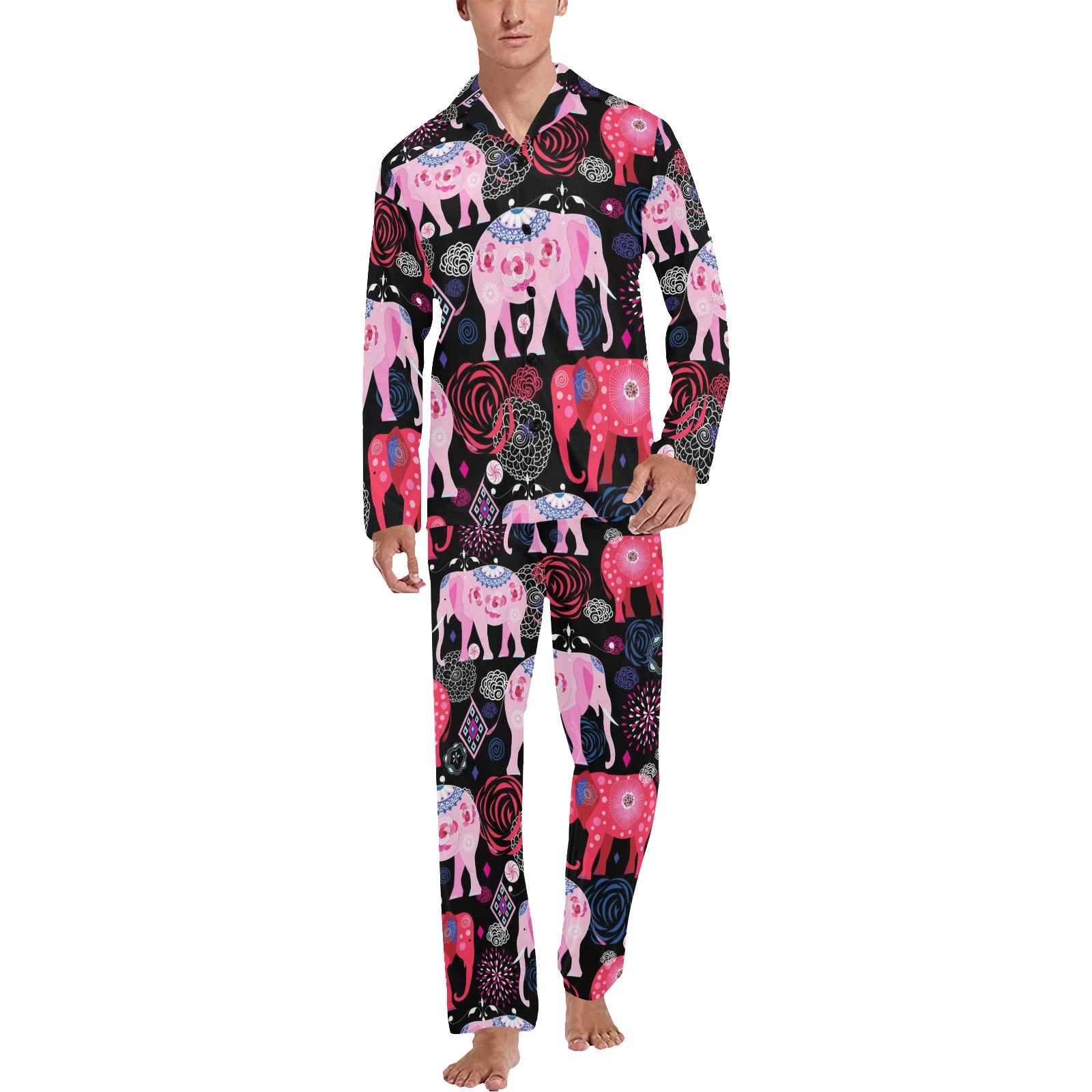 Pink Elephant Pattern Men's Long Pajama Set Made to Order Item. It is hand-cut and sewn just for your order! This process starts as soon as your order is placed and may have a processing time of 5-9 business days before it ships.