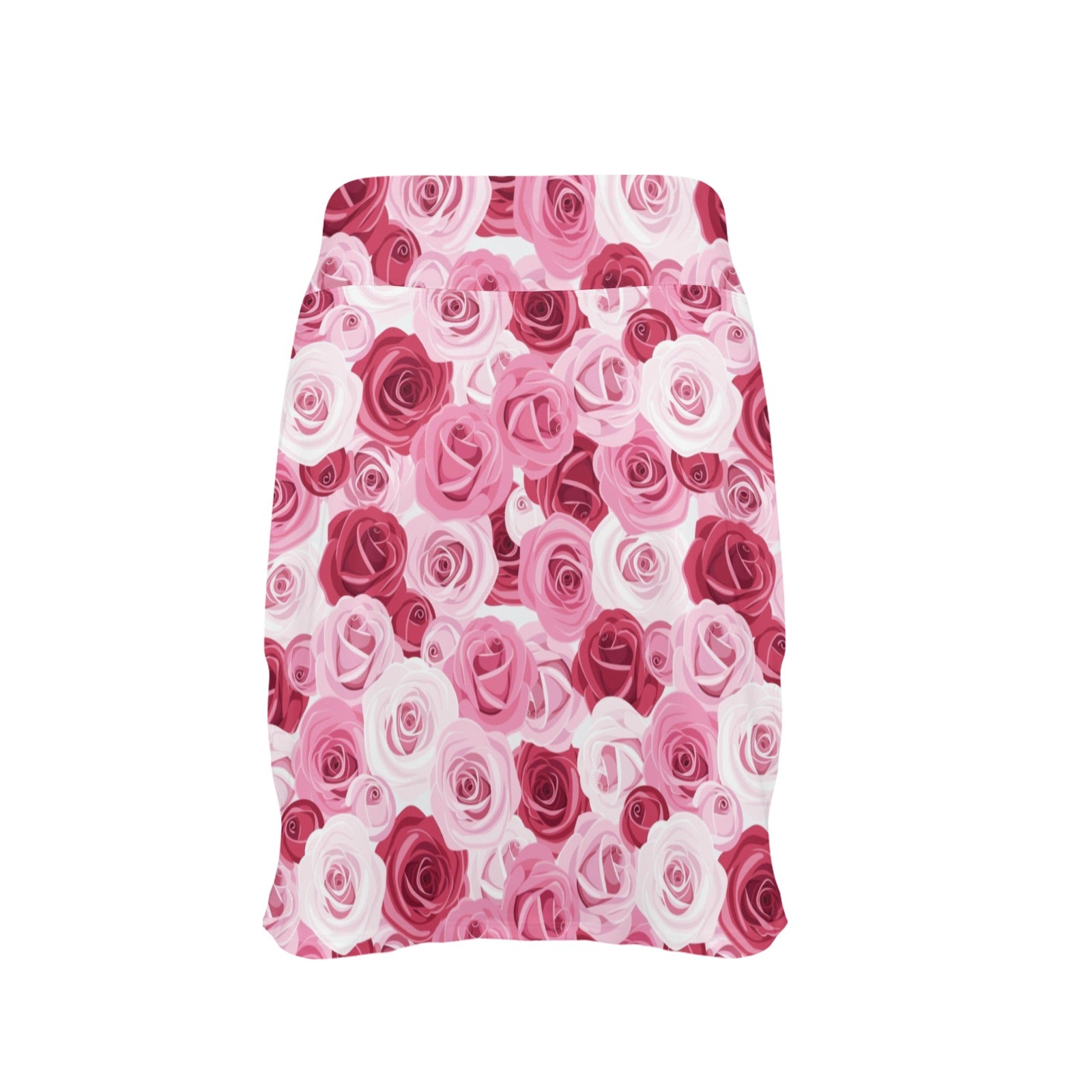 Pink Red Rose Pattern Print Women's Golf Skirt with Pocket