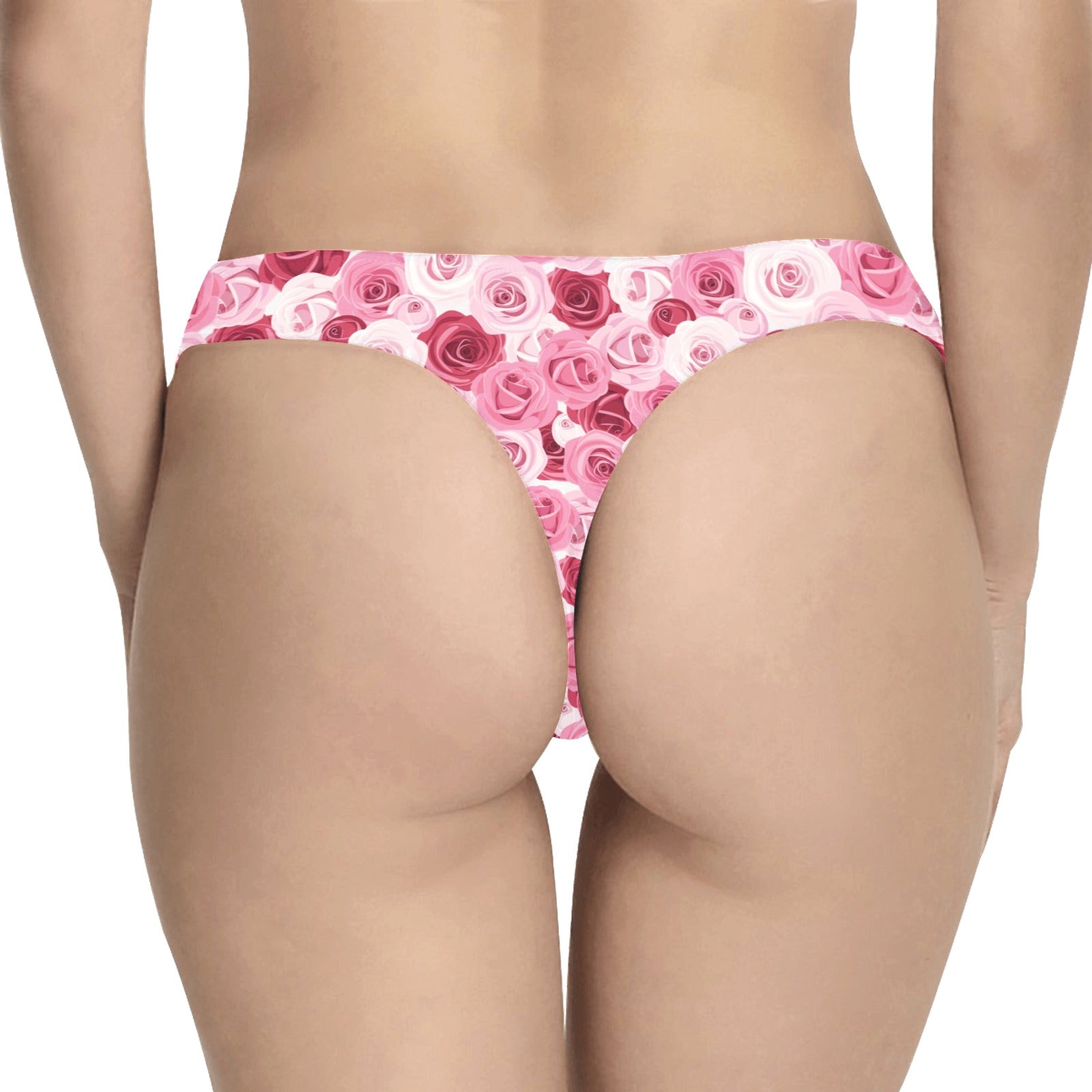 Pink Red Rose Pattern Print Women's Thongsis custom-made-to-order and handcrafted to the highest quality standards.
