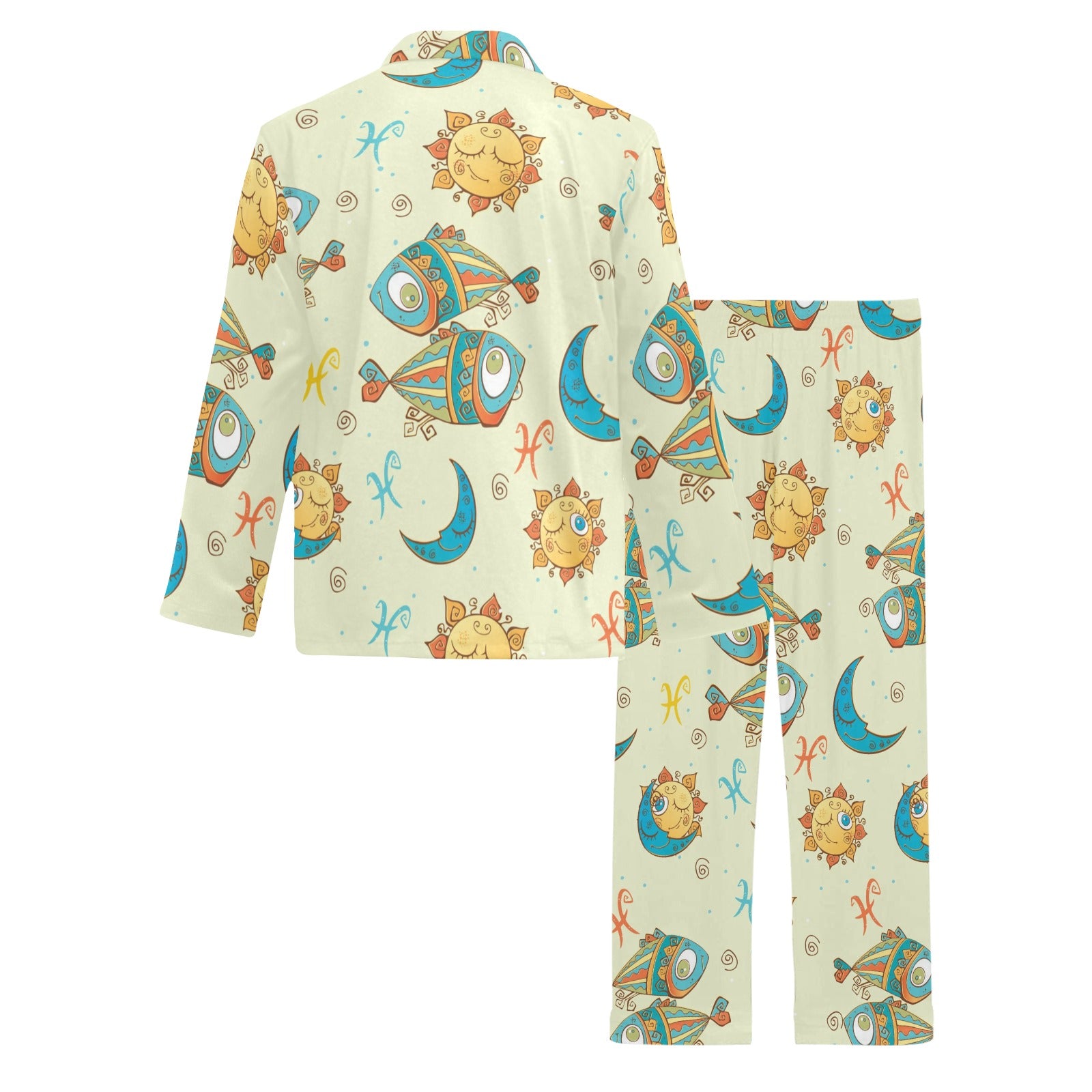 Pisces Pattern Print Design A03 Men's Long Pajama Set