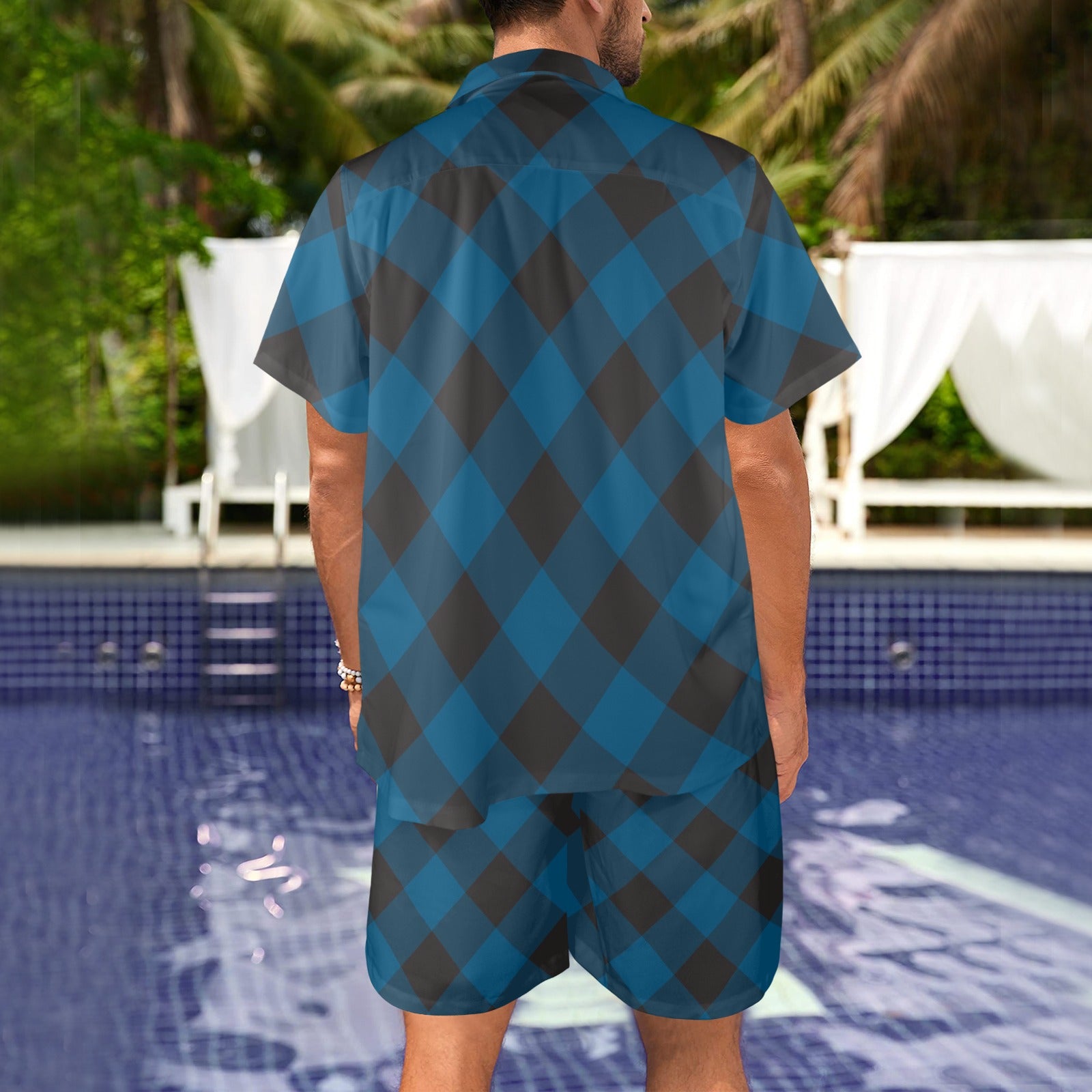 Plaid Blue Pattern Print Design A04 Men's Beach Shirt and Shorts Set. It is hand-cut and sewn just for your order! This process starts as soon as your order is placed and may have a processing time of 5-9 business days before it ships.