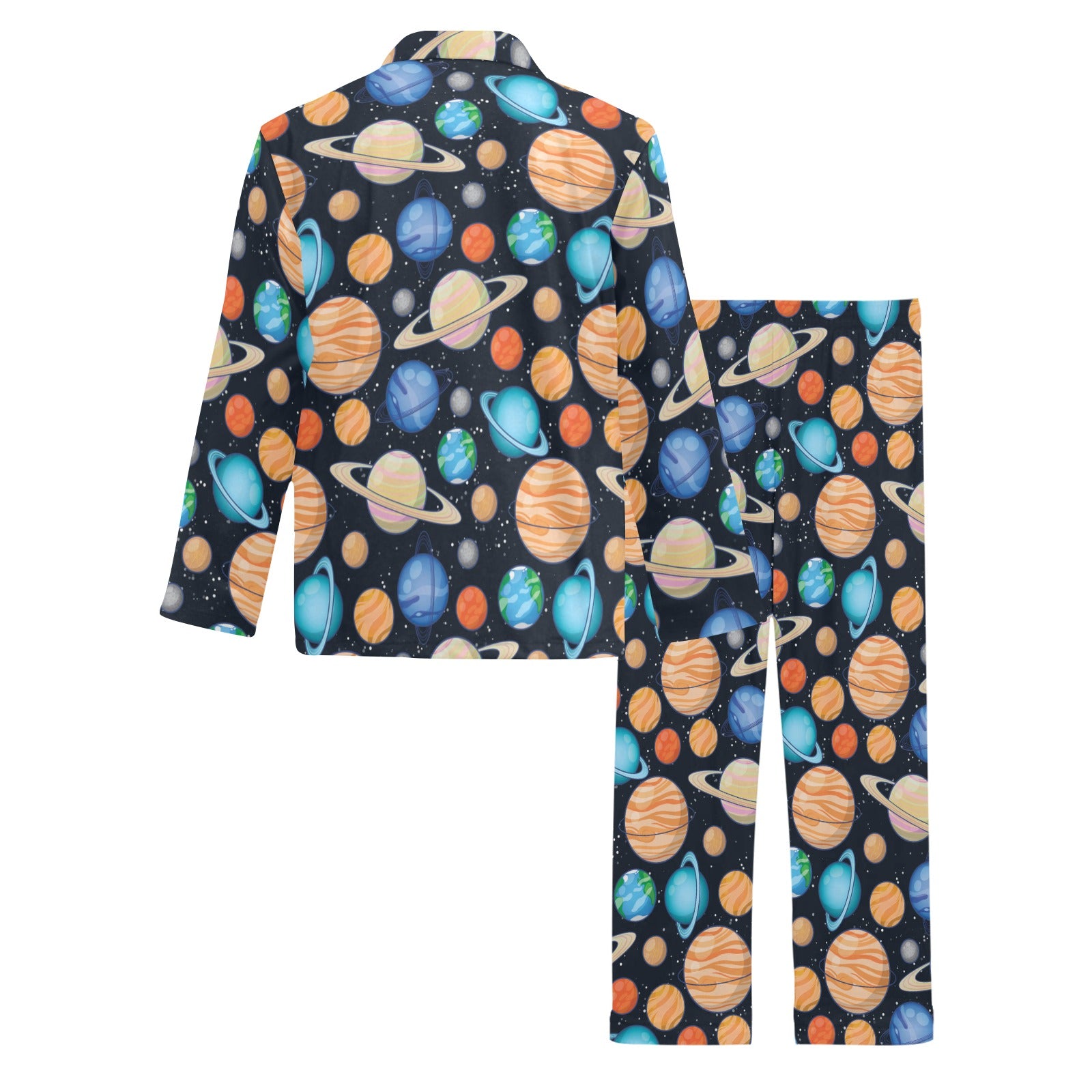 Planet Colorful Print Design LKS301 Men's Long Pajama Set custom-made-to-order and handcrafted to the highest quality standards.