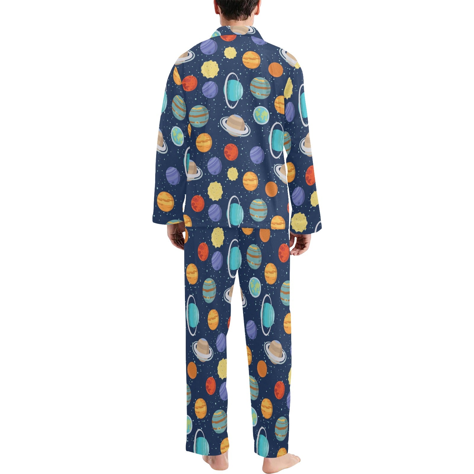 Planet With Star Print Design LKS303 Men's Long Pajama Set custom-made-to-order and handcrafted to the highest quality standards.