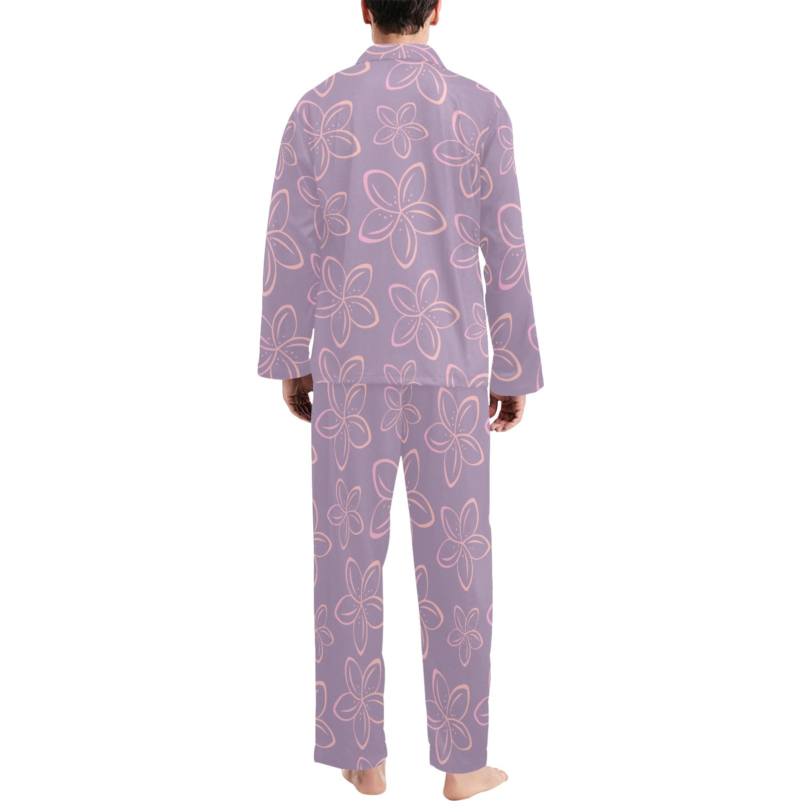 Plumeria Pattern Print Design A01 Men's Long Pajama Set custom-made-to-order and handcrafted to the highest quality standards.