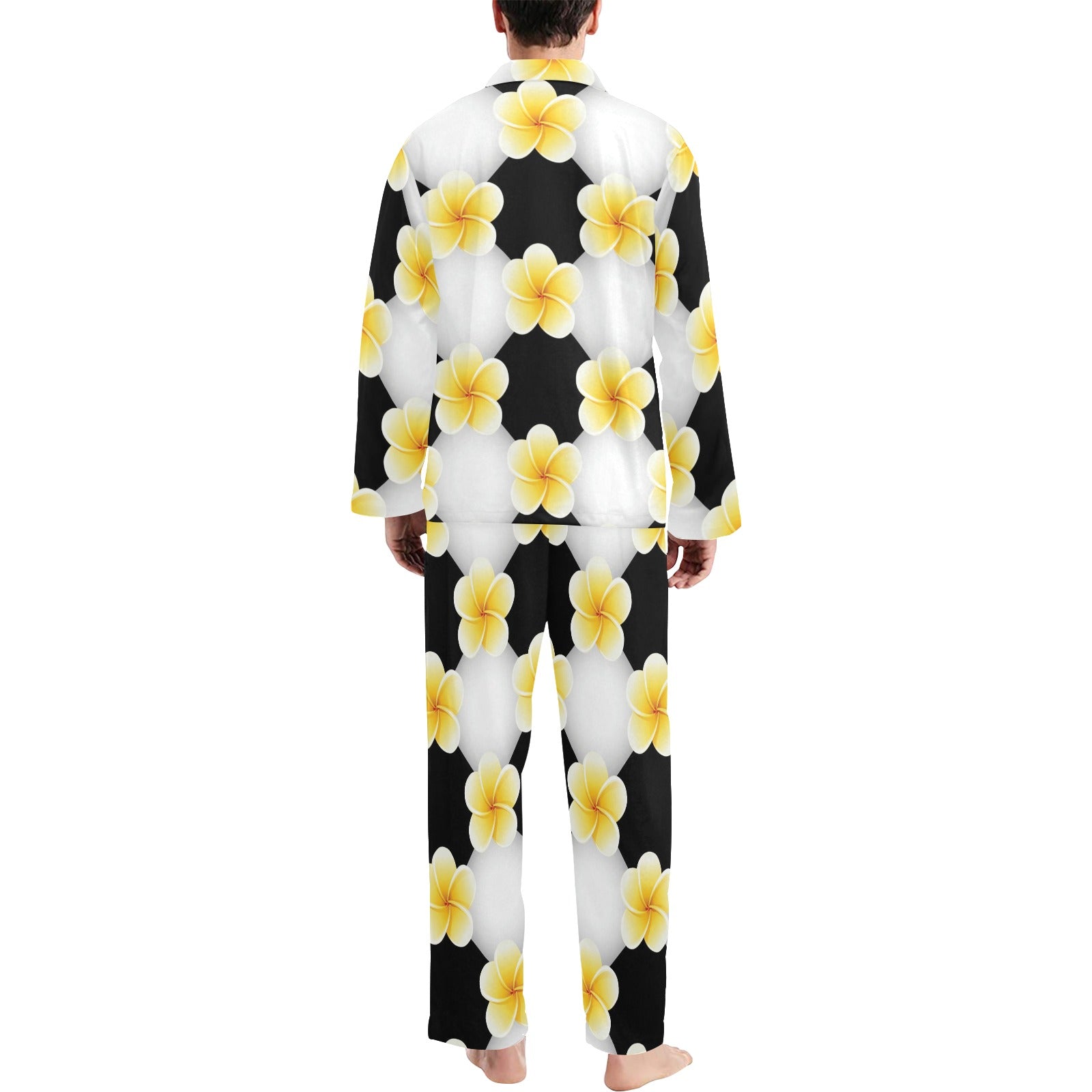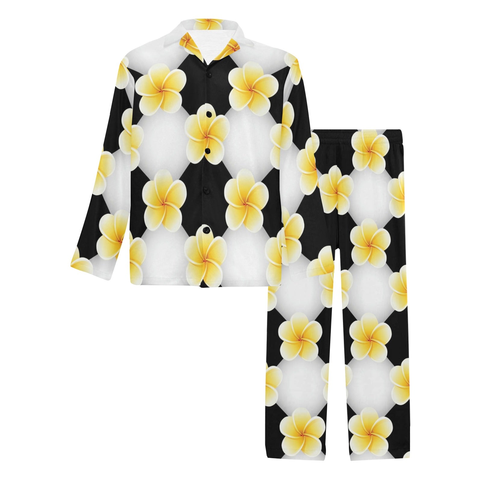 Plumeria Pattern Print Design A04 Men's Long Pajama Set custom-made-to-order and handcrafted to the highest quality standards.