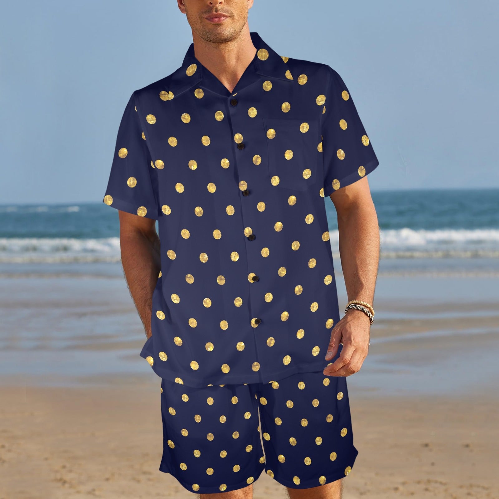 Polka Dot Gold Blue Pattern Print Design 02 Men's Beach Shirt and Shorts Set