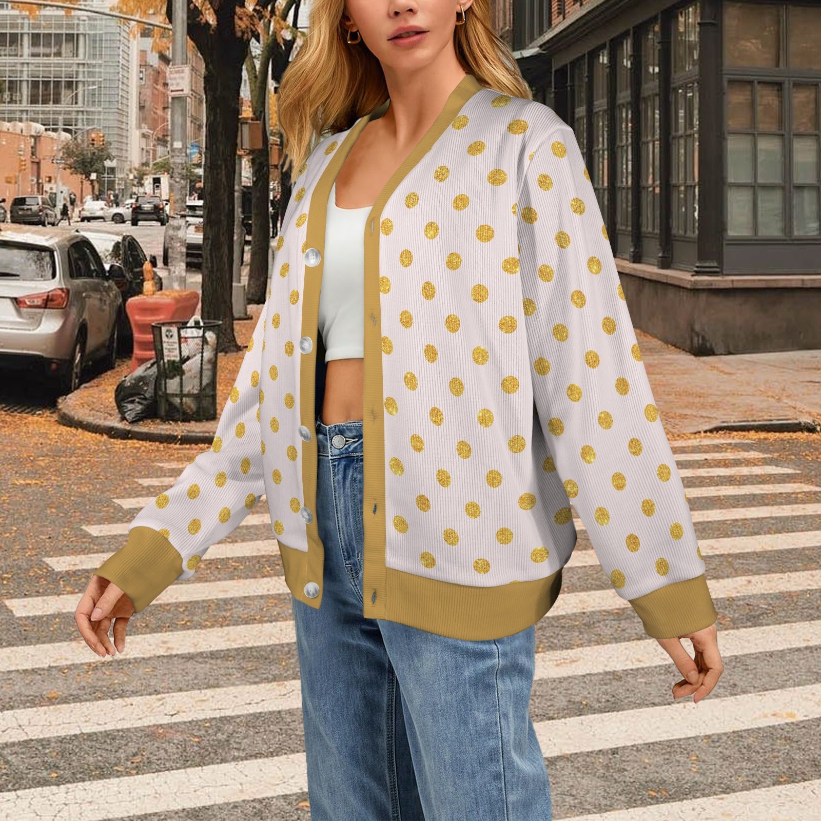 Polka Dot Gold Pink Pattern Print Design 01 Women's Cardigan made-to-order and handcrafted to the highest quality standards.