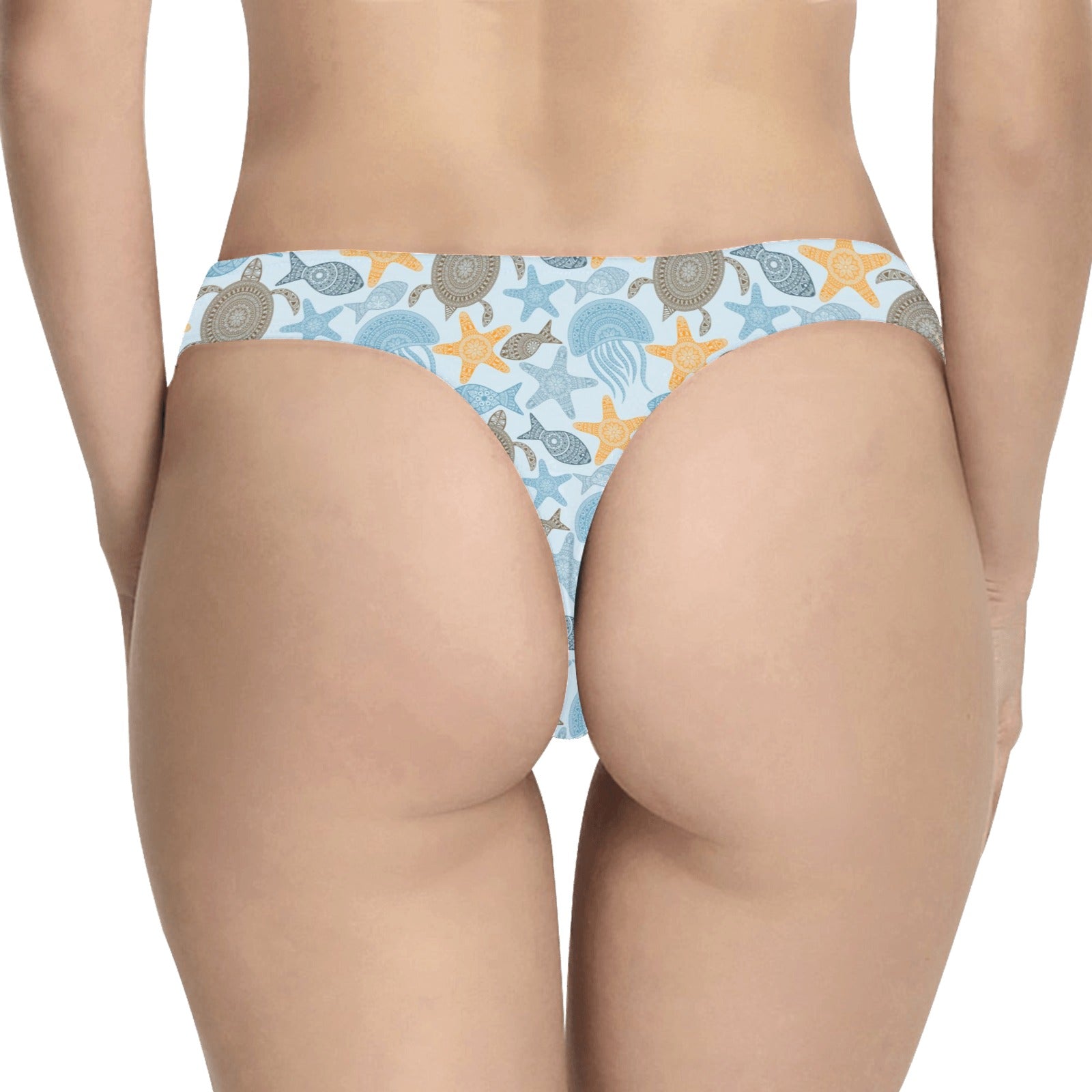 Polynesian Jellyfish Turtle Print Women's Thongsis custom-made-to-order and handcrafted to the highest quality standards.