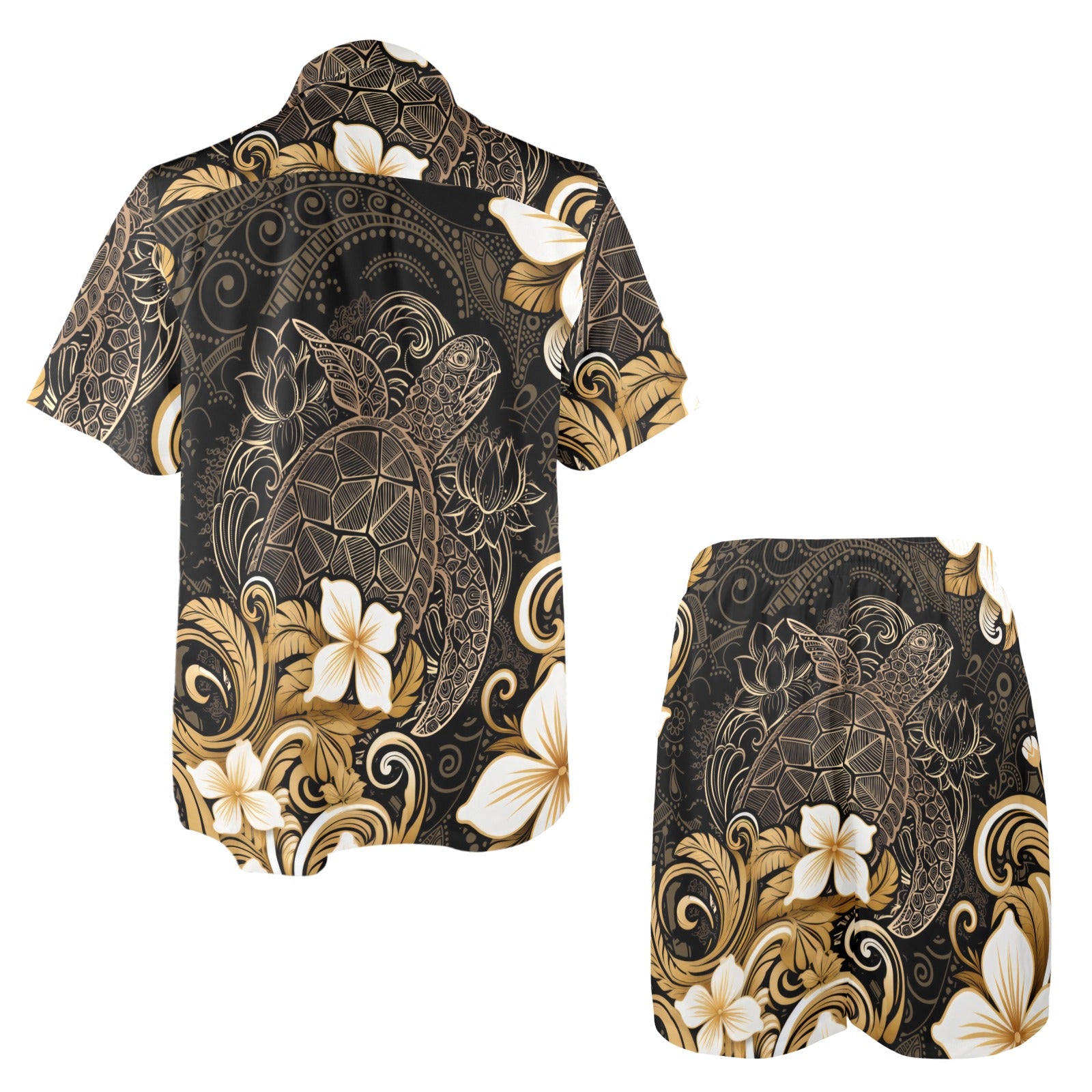 Polynesian Plumeria Sea Turtle Men's Beach Shirt and Shorts Set
