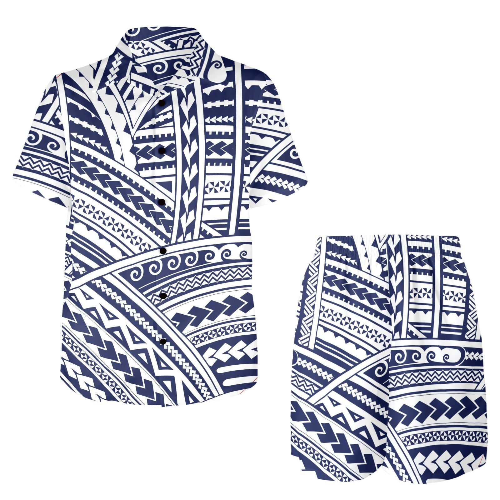 Polynesian Tribal Circle Round beach Blanket Men's Beach Shirt and Shorts Set