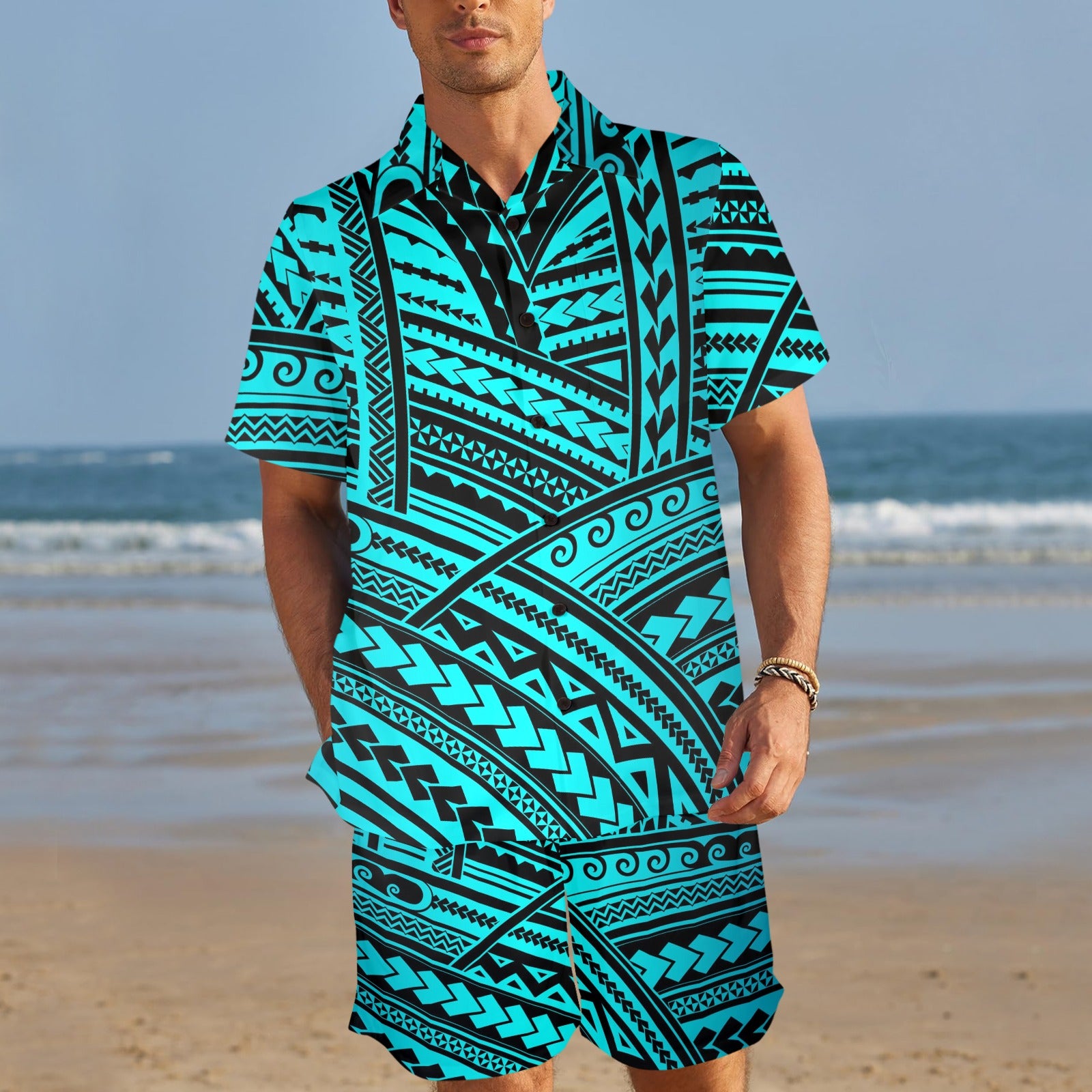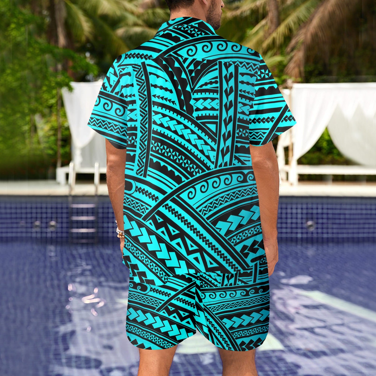 Polynesian Tribal Men's Beach Shirt and Shorts Set
