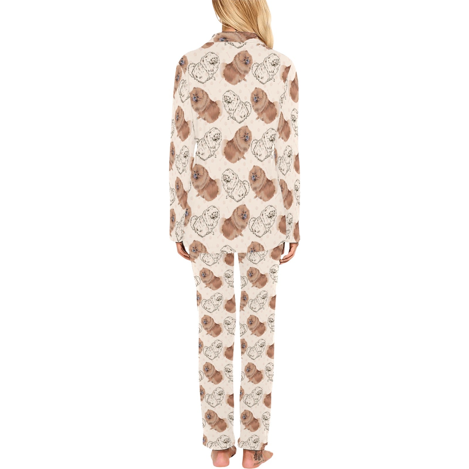 Pomeranians Pattern Print Design A01 Women's Long Pajama Set